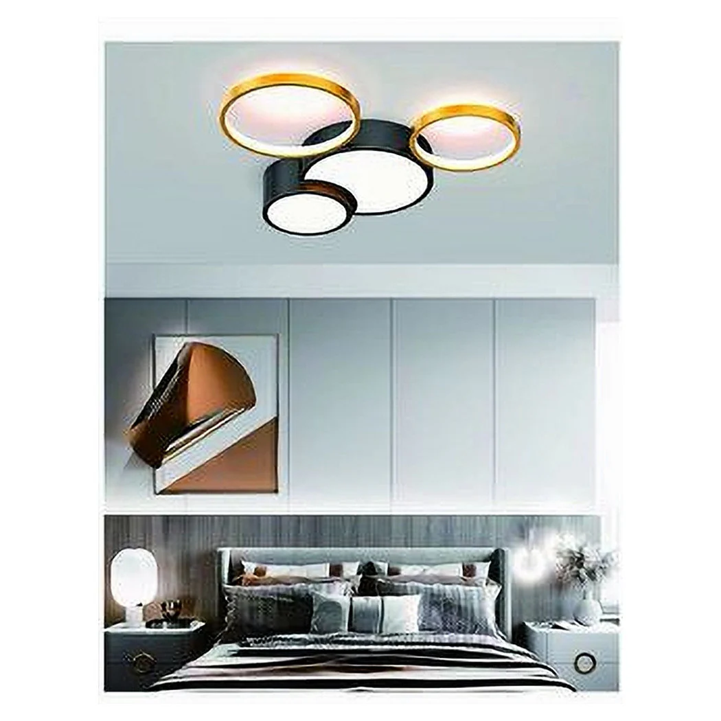 Luz del techo LED 36W 4 Círculos de oro negros Lámpara de techo ligera moderna 6500K 70968