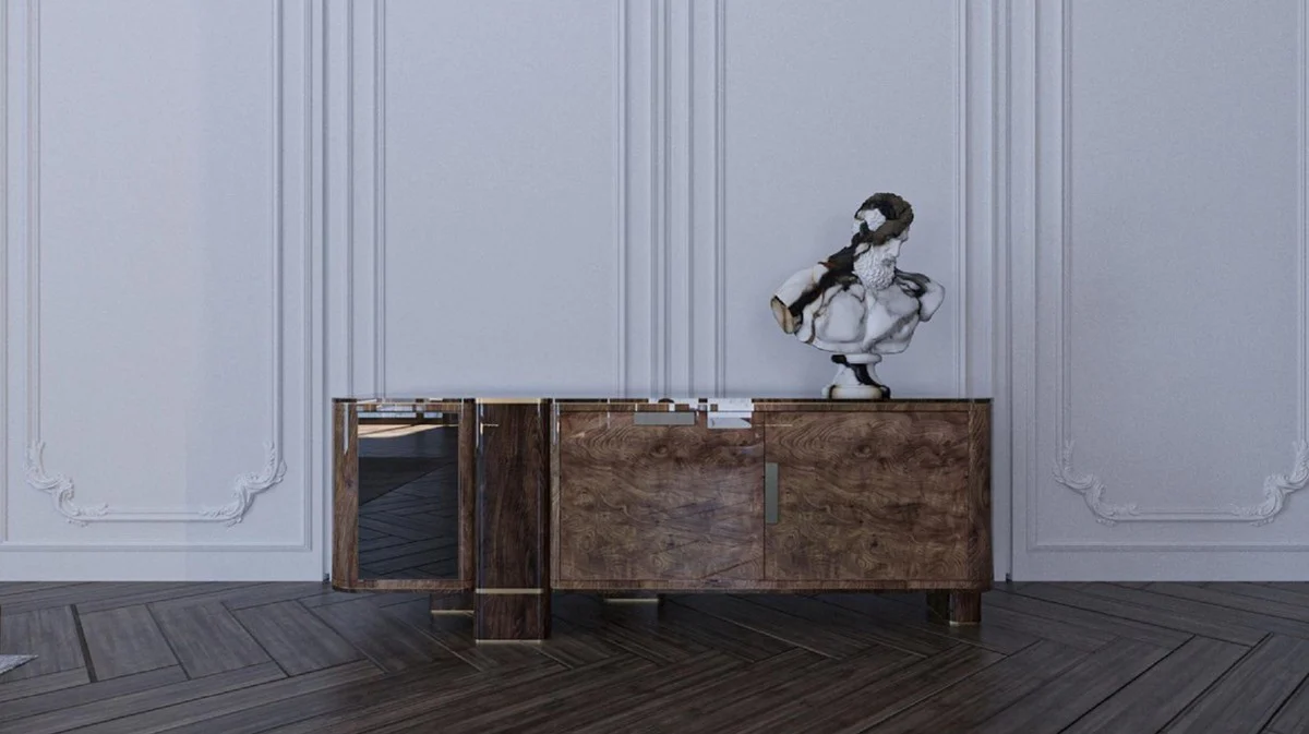Casa Padrino aparador de lujo con 4 puertas y espejo de pared redondo - Muebles de lujo