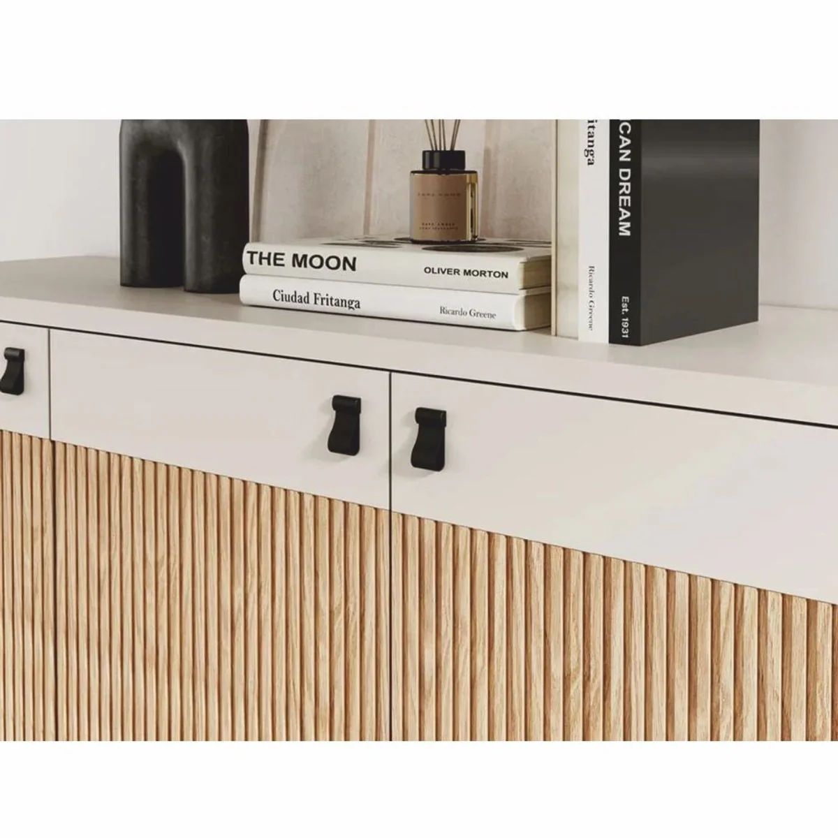 Casa Padrino aparador de lujo con 4 puertas blanco / natural / negro / oro 220 cm