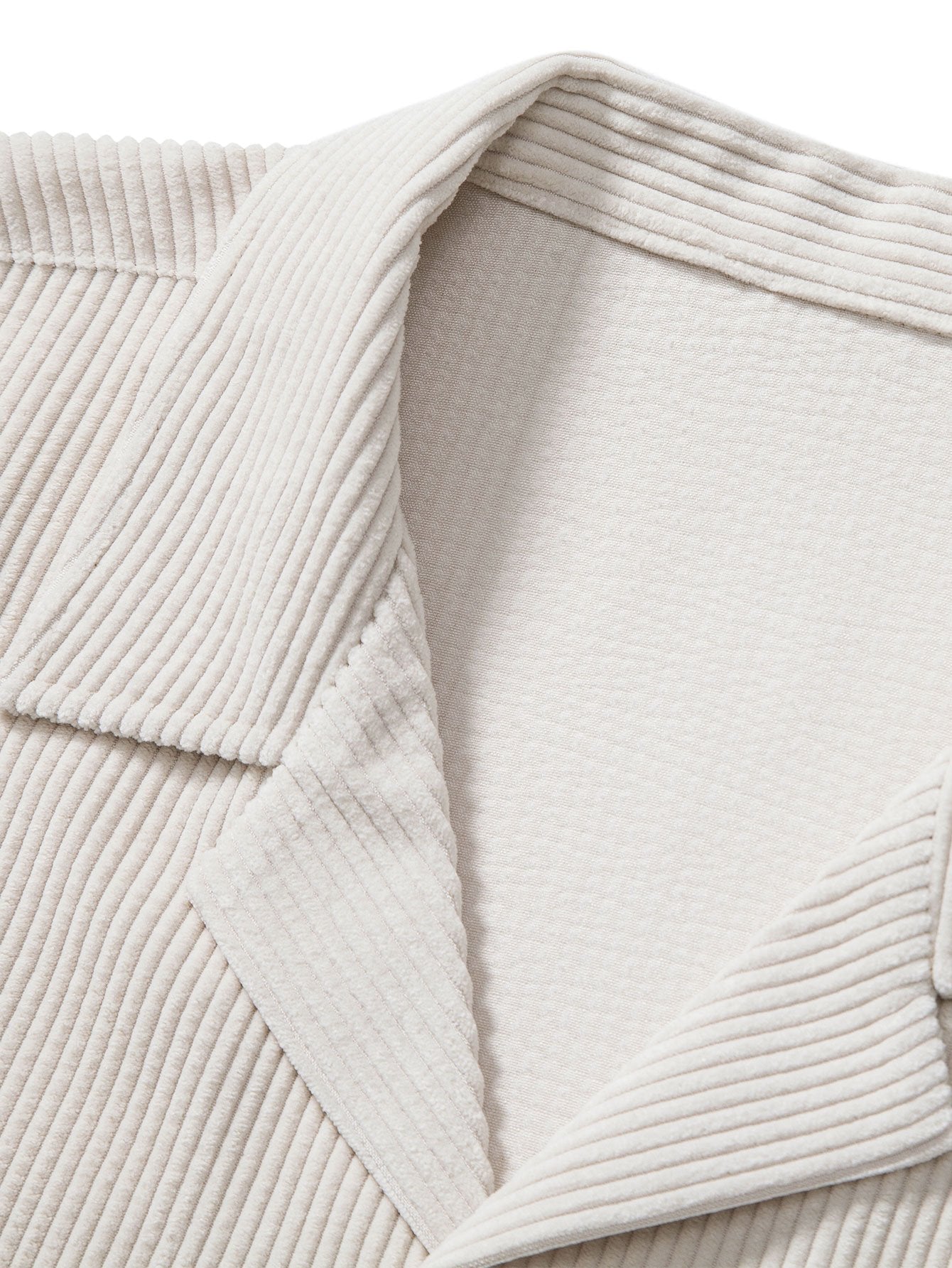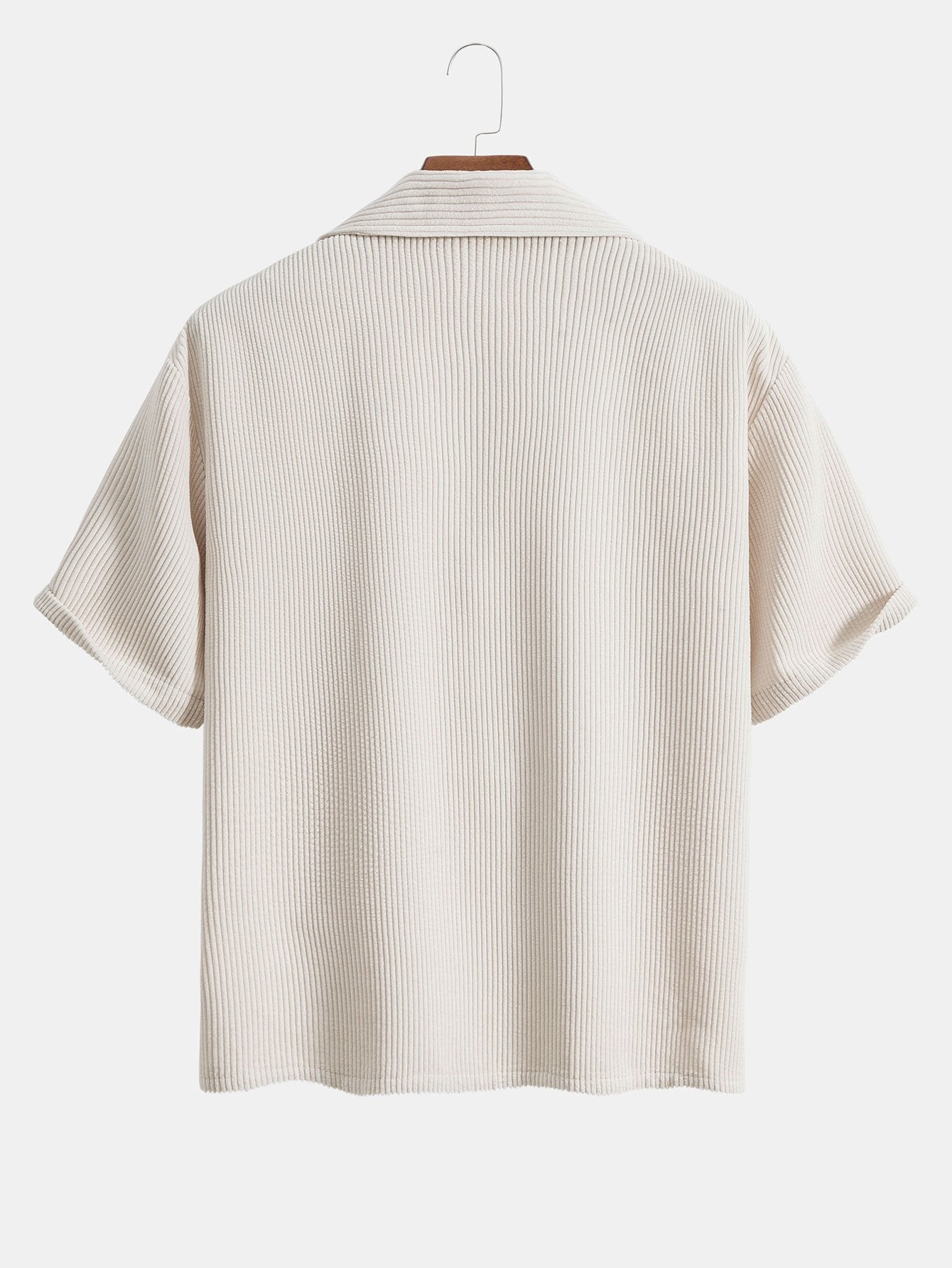 Wrinkled Cotton Half Open Placket Henley Collar Shirt & Straight Leg Linen Pants