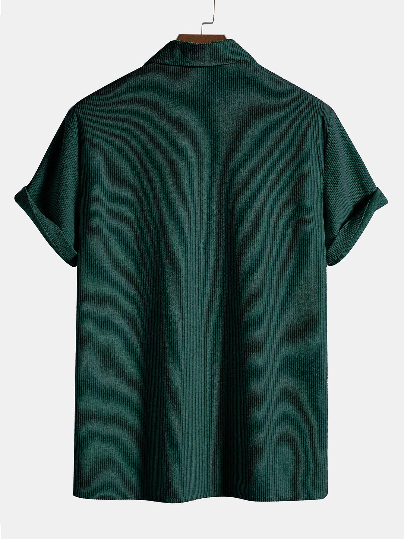Short Sleeve Half Button Fly Henley Collar Shirt & Linen Cotton Blend 11" Shorts