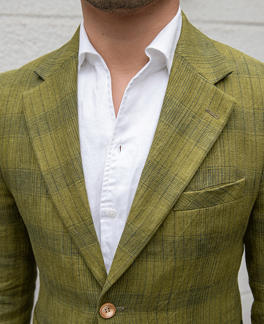 OK Vintage Plaid Notch Lapel Pocket Two Button Linen Blazer