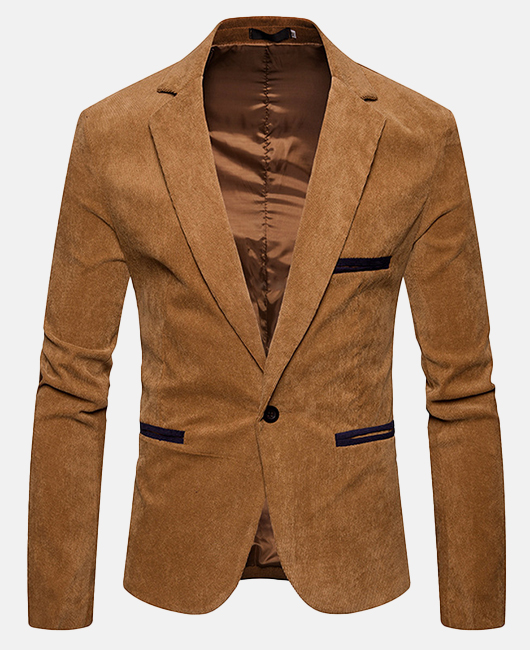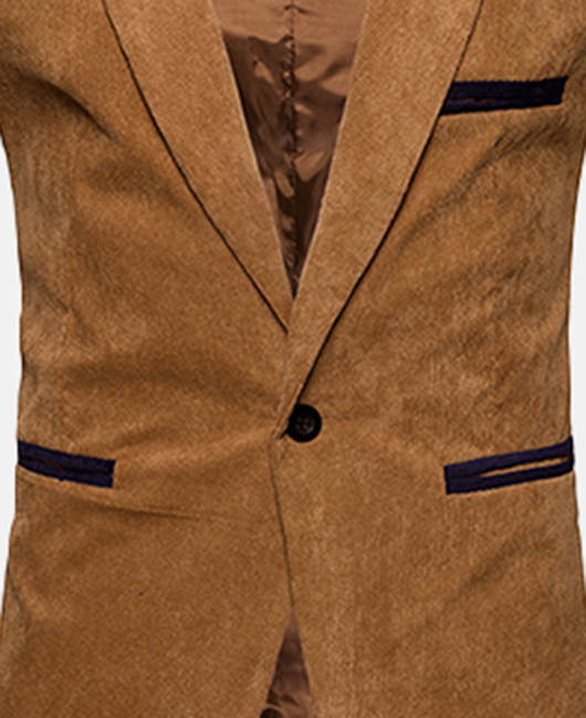 Contrast Color Pockets Notch Lapel Slim Fit Corduroy Blazer
