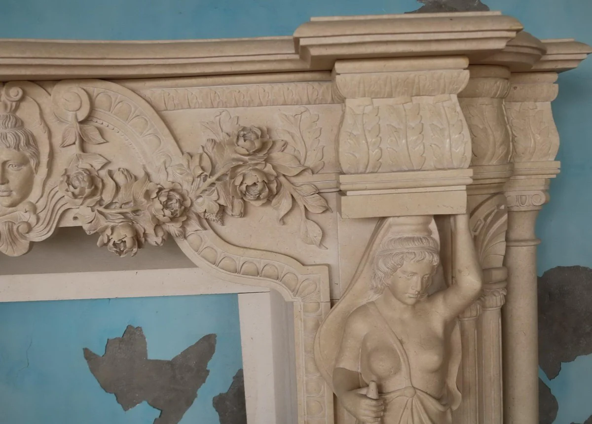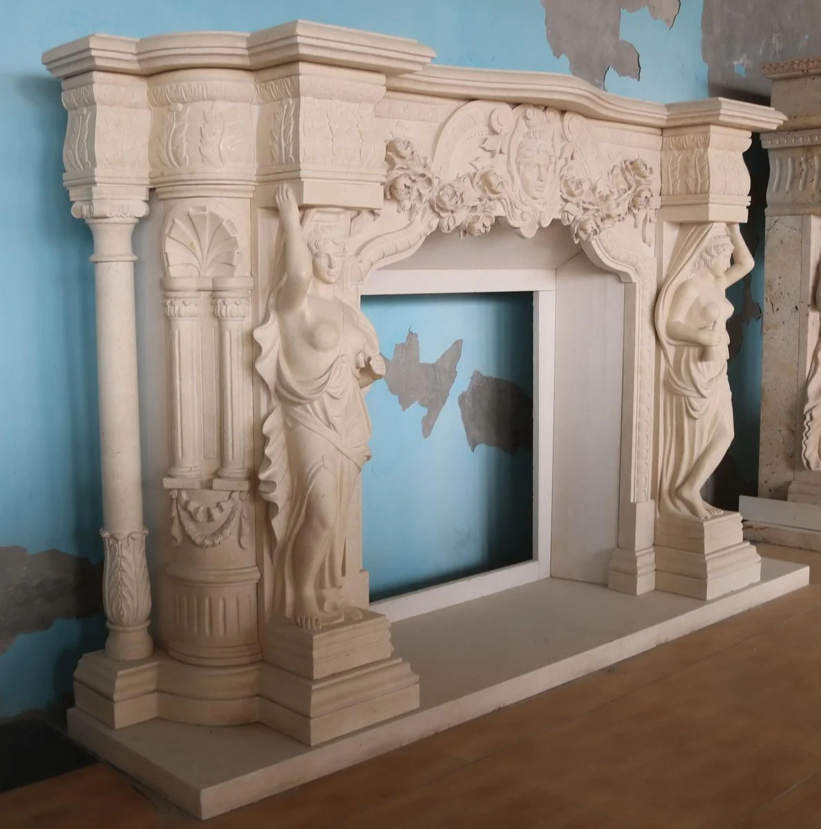 Casa Padrino marco de chimenea de m¨¢rmol barroco de lujo crema 130 x A. 120 cm