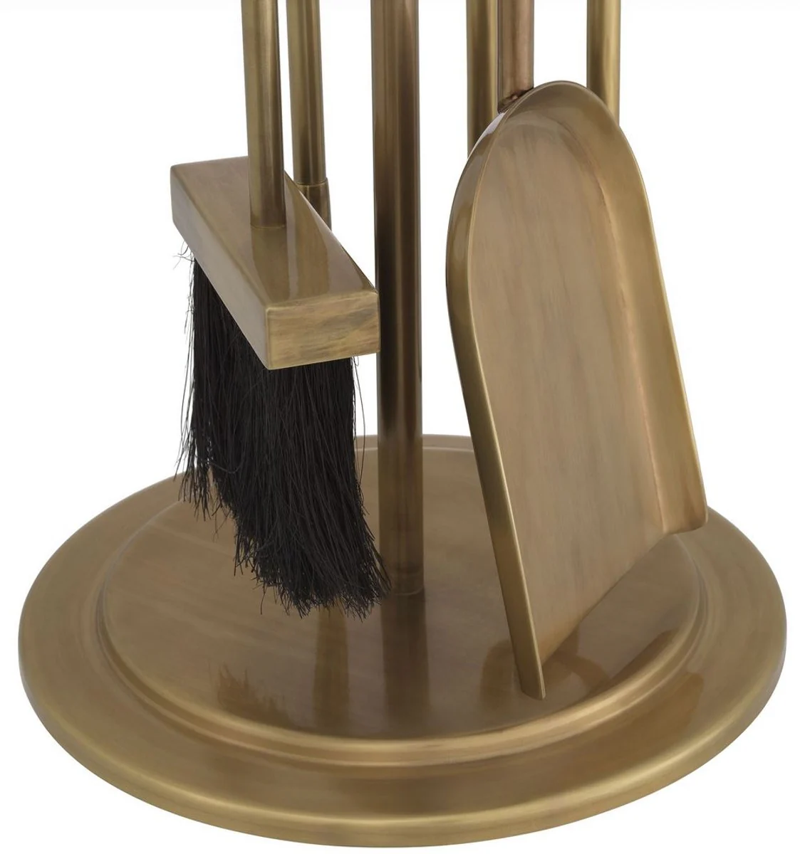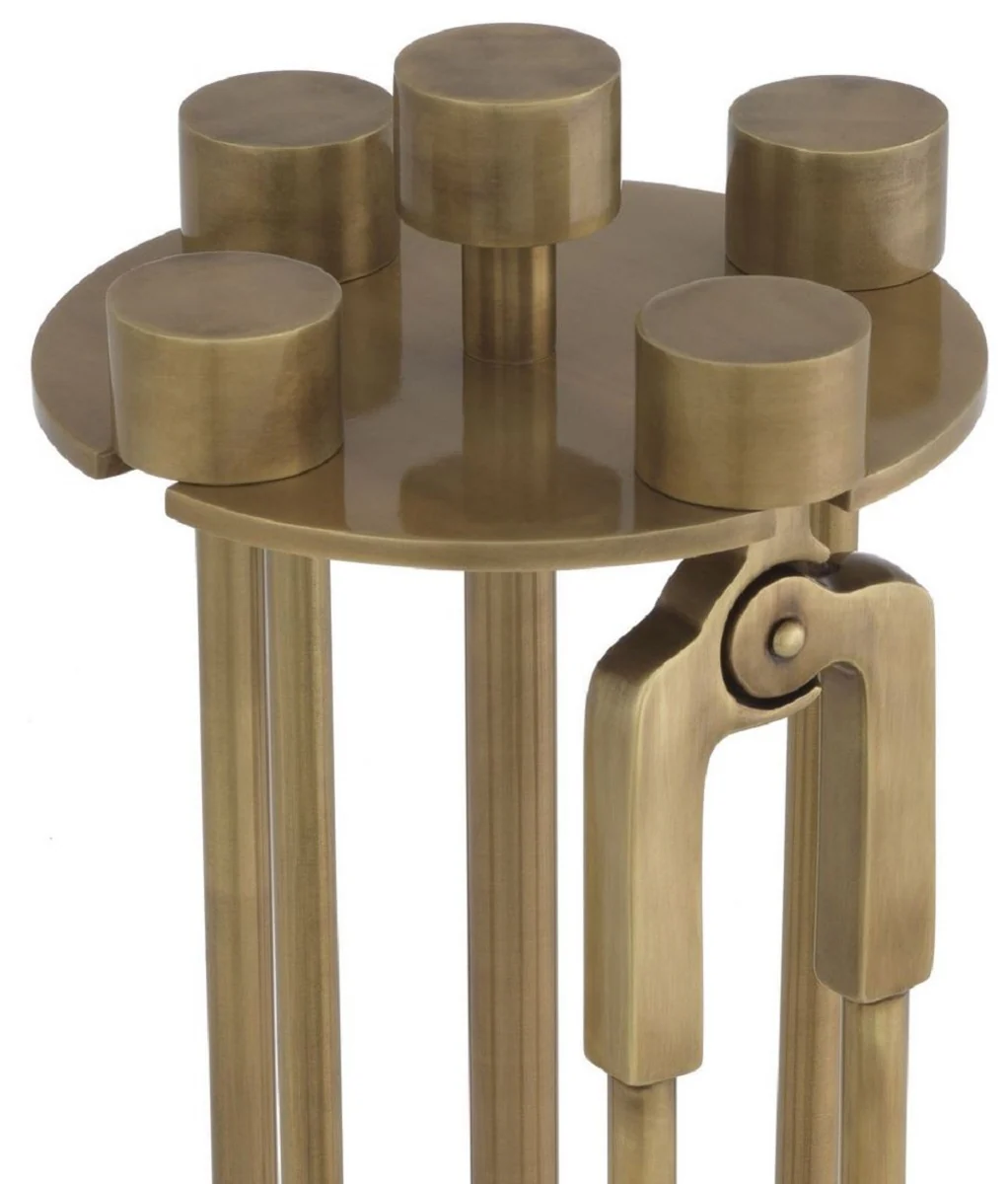 Casa Padrino conjunto de chimenea de lujo lat¨®n vintage ? 27,5 x A. 71 cm - Conjunto de chimenea de 4 piezas con soporte - Accesorios para Chimenea