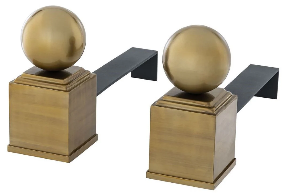 Casa Padrino conjunto de morillos de lujo lat¨®n vintage / negro 45 x 17 x A. 30 cm - Accesorios para Chimeneas - Colecci¨®n de Lujo