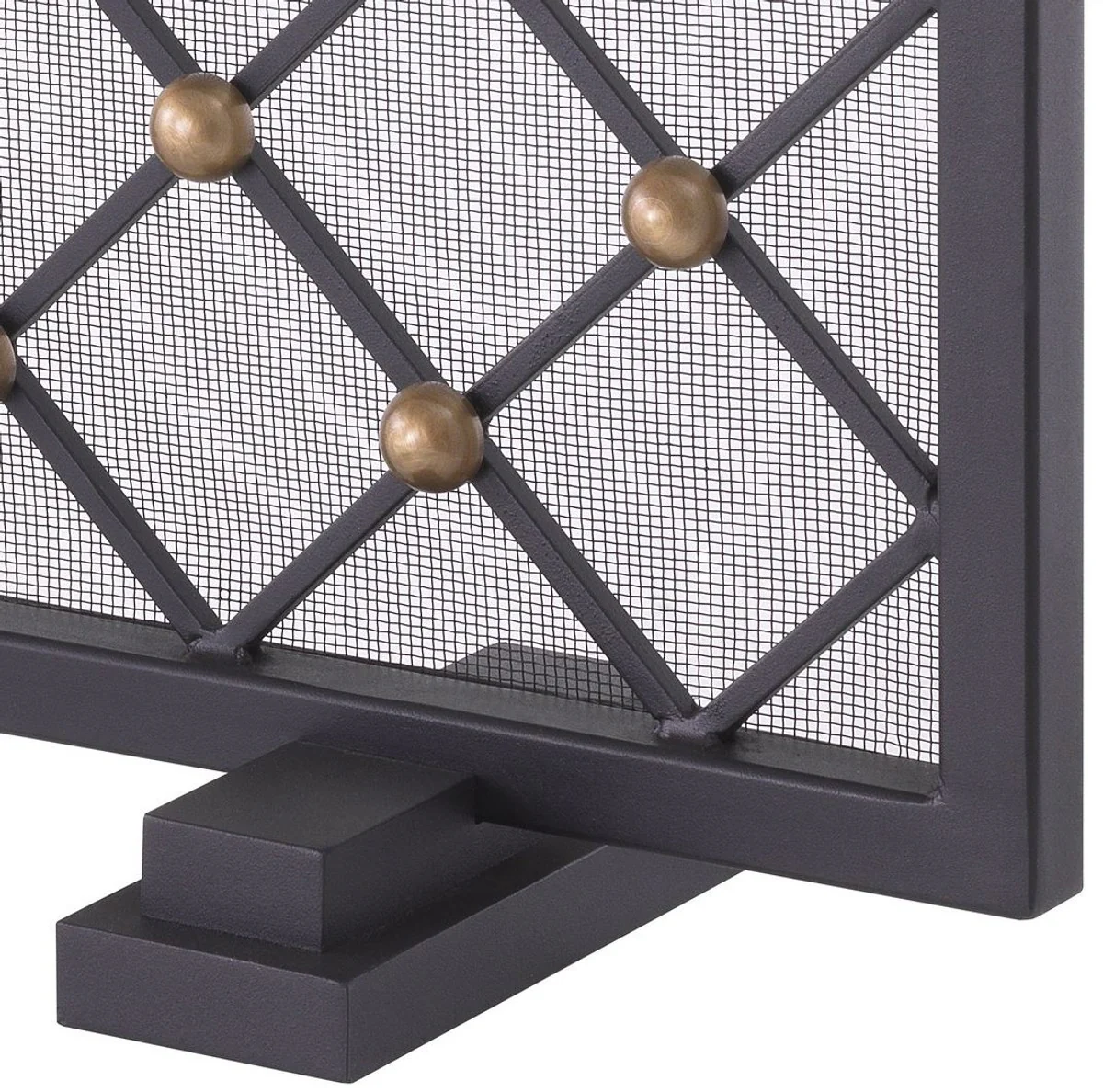 Casa Padrino pantalla de chimenea de lujo negro / latón vintage 84 x 15 x A. 57 cm - Protección contra chispas con patrón de diamantes - Accesorios de chimenea de lujo