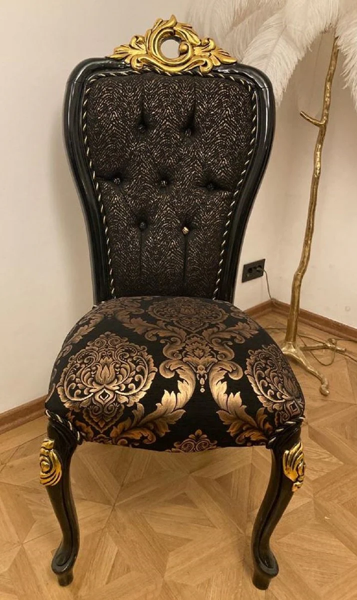 Casa Padrino silla de comedor barroco de lujo con patr¨®n elegante negro / oro - Muebles de comedor en estilo barroco - Muebles de lujo en estilo barroco - Interior barroco - Muebles barrocos
