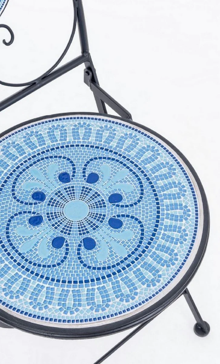 Casa Padrino conjunto de 4 sillas de jard¨ªn Art Nouveau negro / azul / blanco 39 x 47 x A. 92 cm - Sillas plegables con tapas de cer¨¢mica - Muebles de Jard¨ªn y Catering