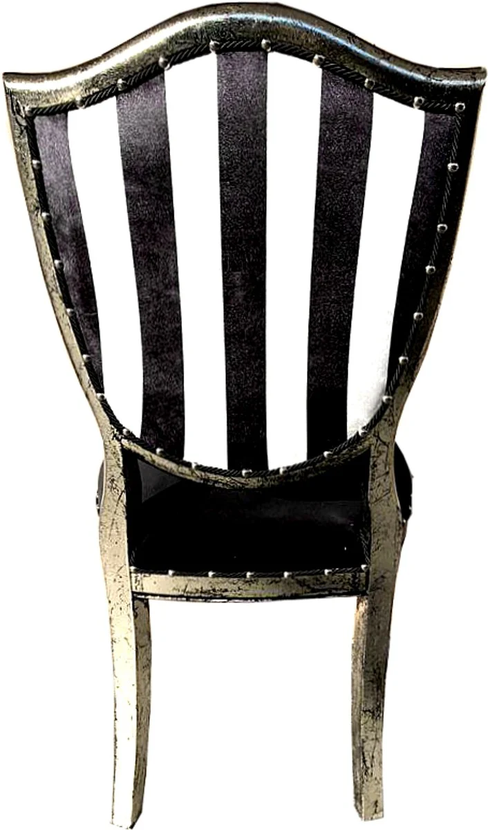 Casa Padrino Art Deco - Silla de comedor de lujo, rayas blancas negras / estilo antiguo plateado - Muebles de hotel de lujo