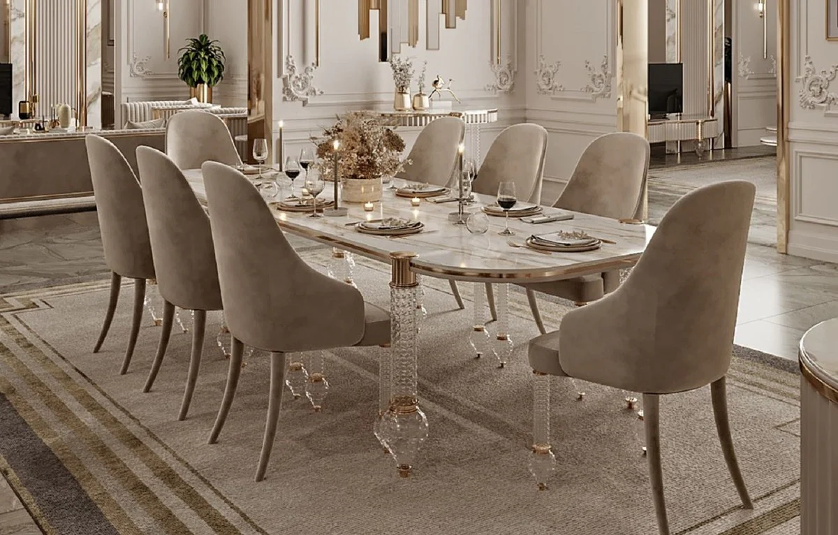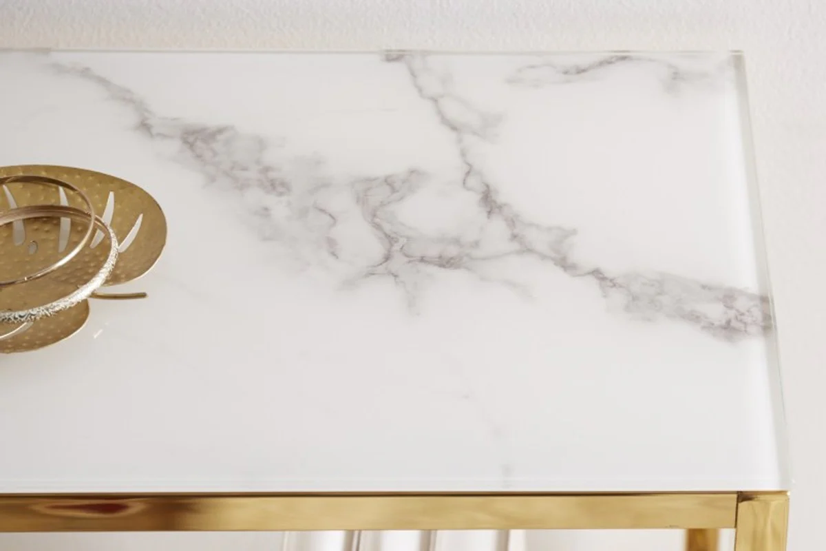 Casa Padrino consola Art Deco de lujo blanco / oro 150 x 45,5 x A. 77 cm - Mesa consola con tablero de m¨¢rmol artificial y elegantes patas de vidrio - Muebles de lujo - Muebles Art Deco