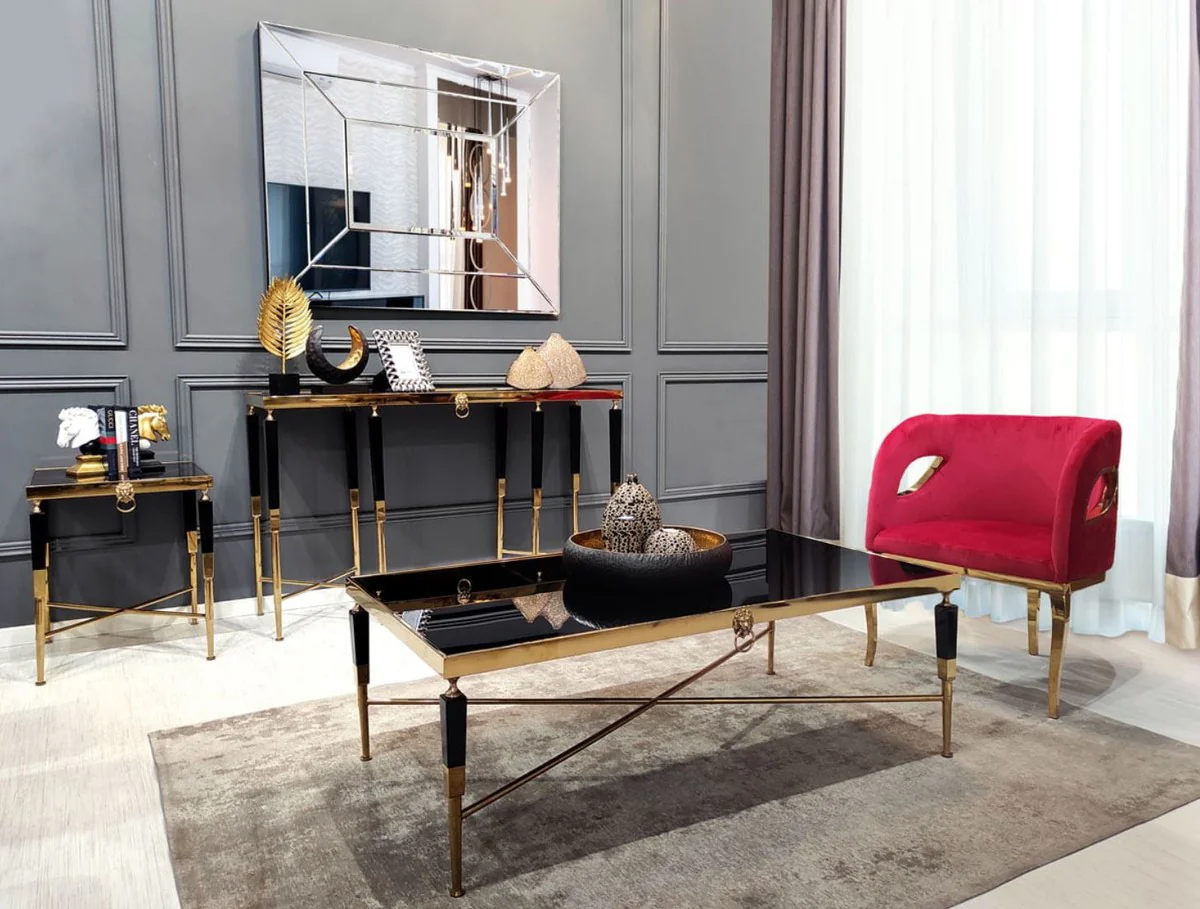 Casa Padrino consola de lujo oro / negro 130 x 45 x A. 79 cm - Mesa consola con tapa de vidrio - Muebles de lujo - Muebles de sal¨®n - Interiores de lujo