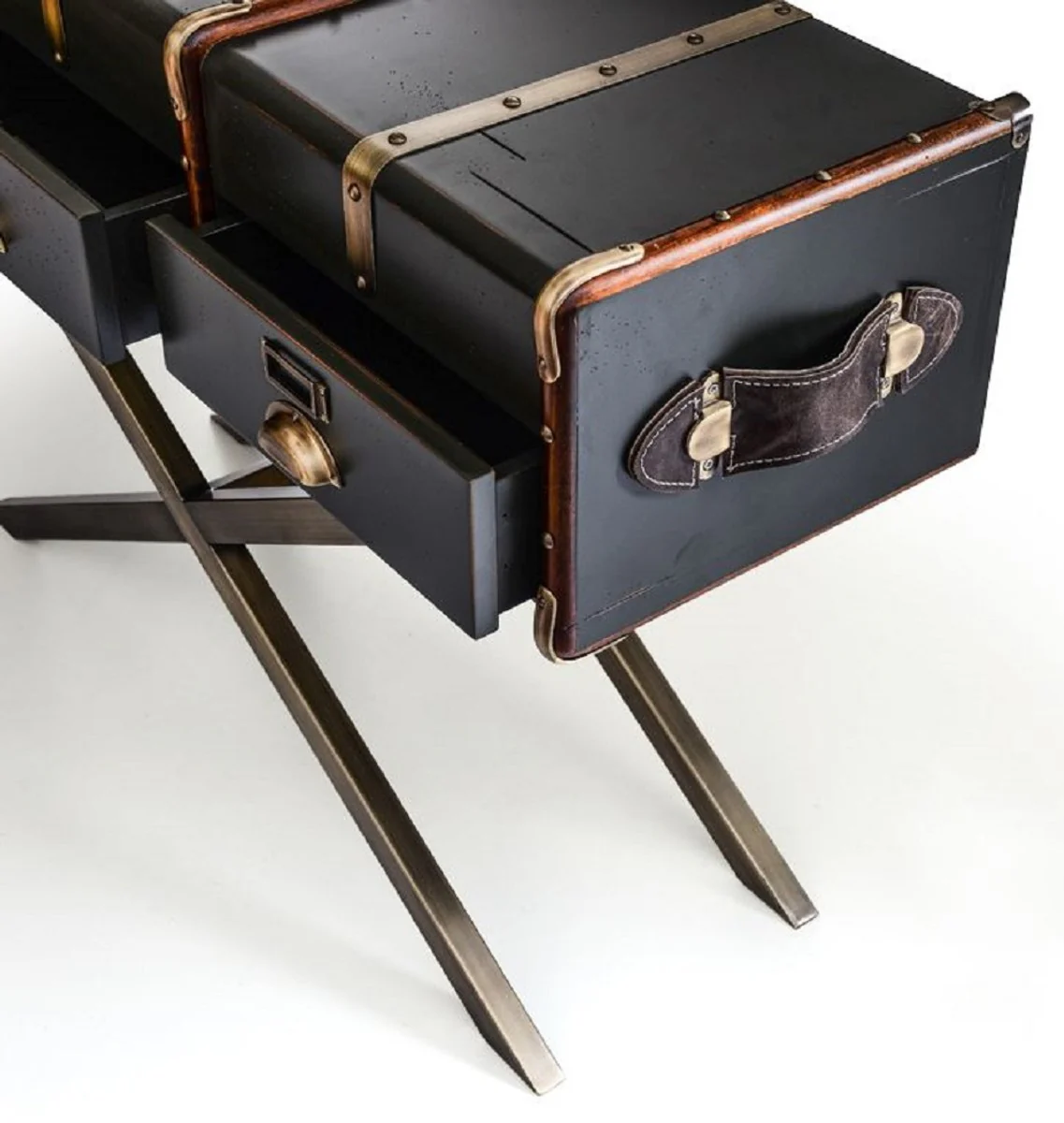 Casa Padrino consola de lujo en ¨®ptica de maleta negro / marr¨®n / lat¨®n 120 x 39 x A. 83 cm - Mesa consola con 3 cajones - Muebles de dormitorio - Muebles de lujo en ¨®ptica de maleta