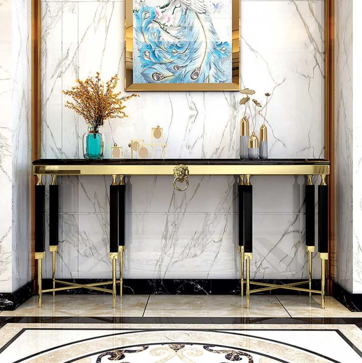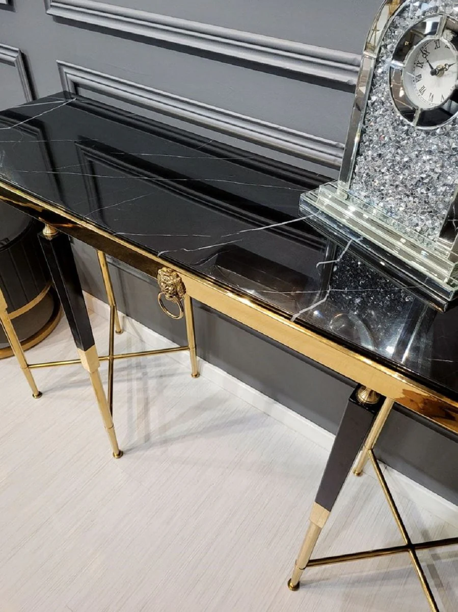 Casa Padrino consola de lujo negro / oro 140 x 40 x A. 85 cm - Mesa consola rectangular con tapa de m¨¢rmol artificial - Muebles de sal¨®n - Muebles de lujo - Interiores de lujo