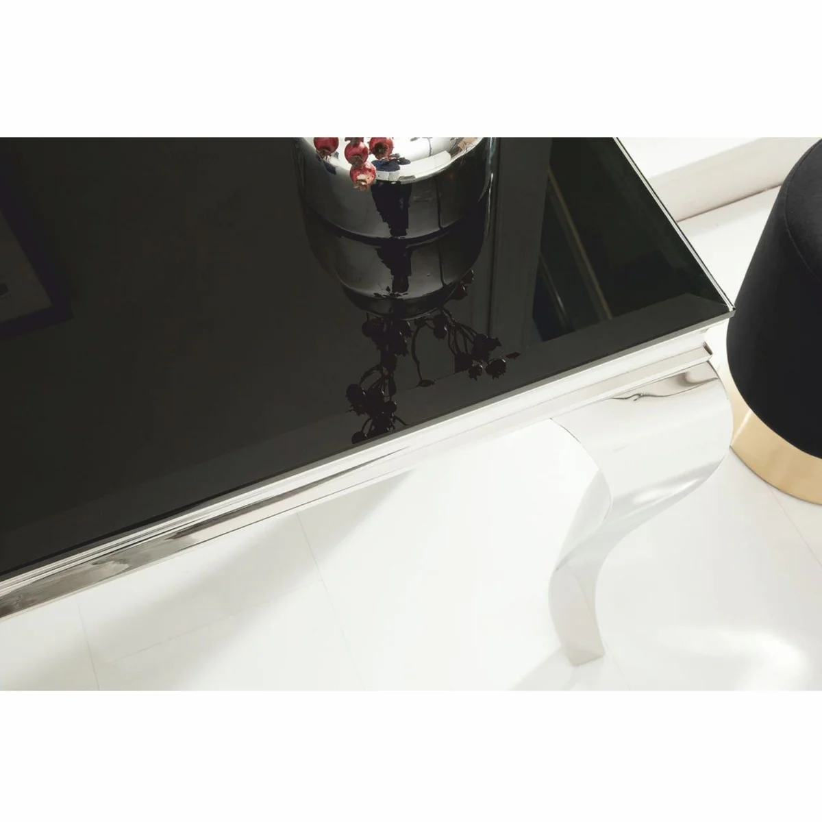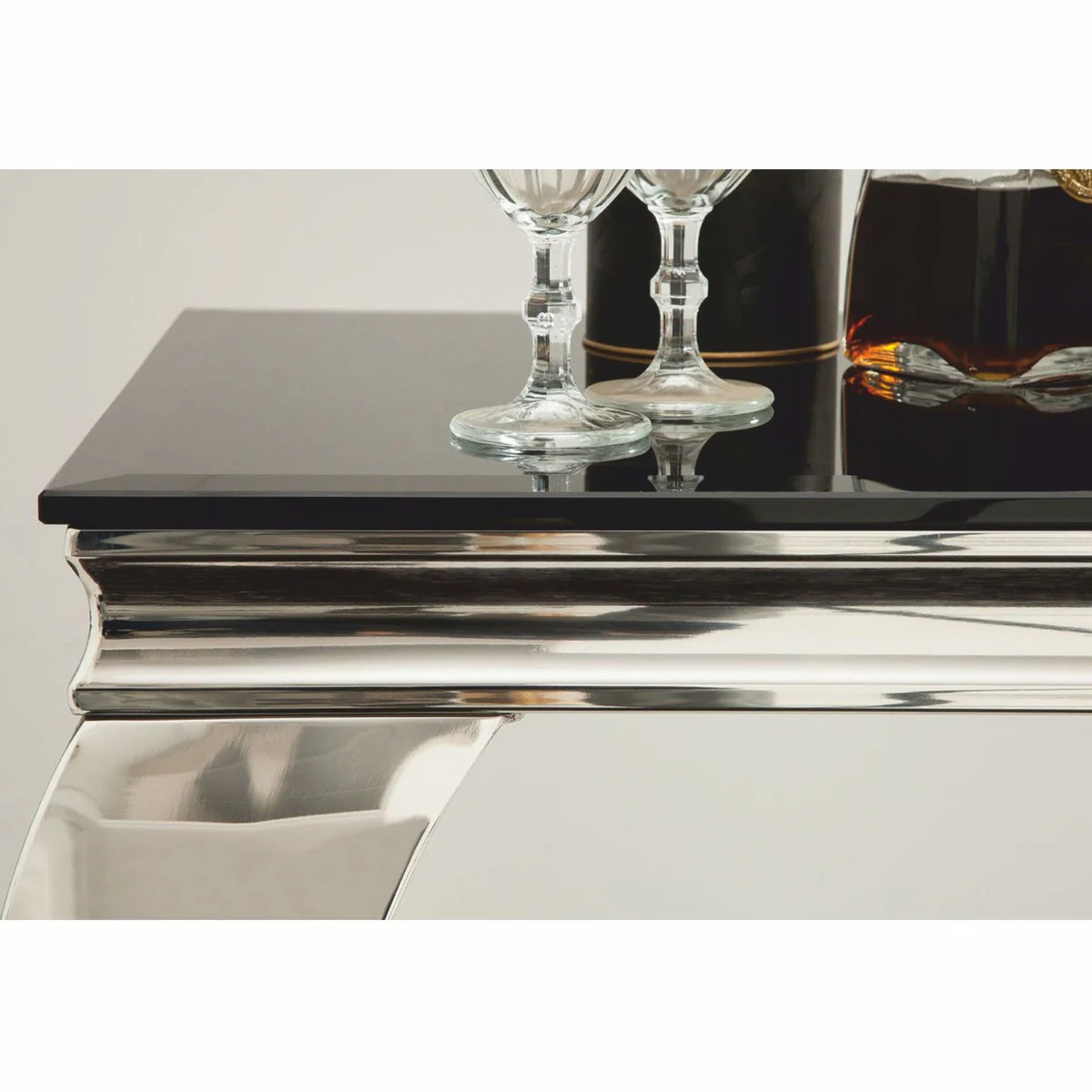 Casa Padrino consola barroco de acero inoxidable con tapa de vidrio plata / negro 145 cm