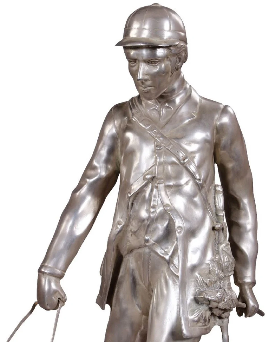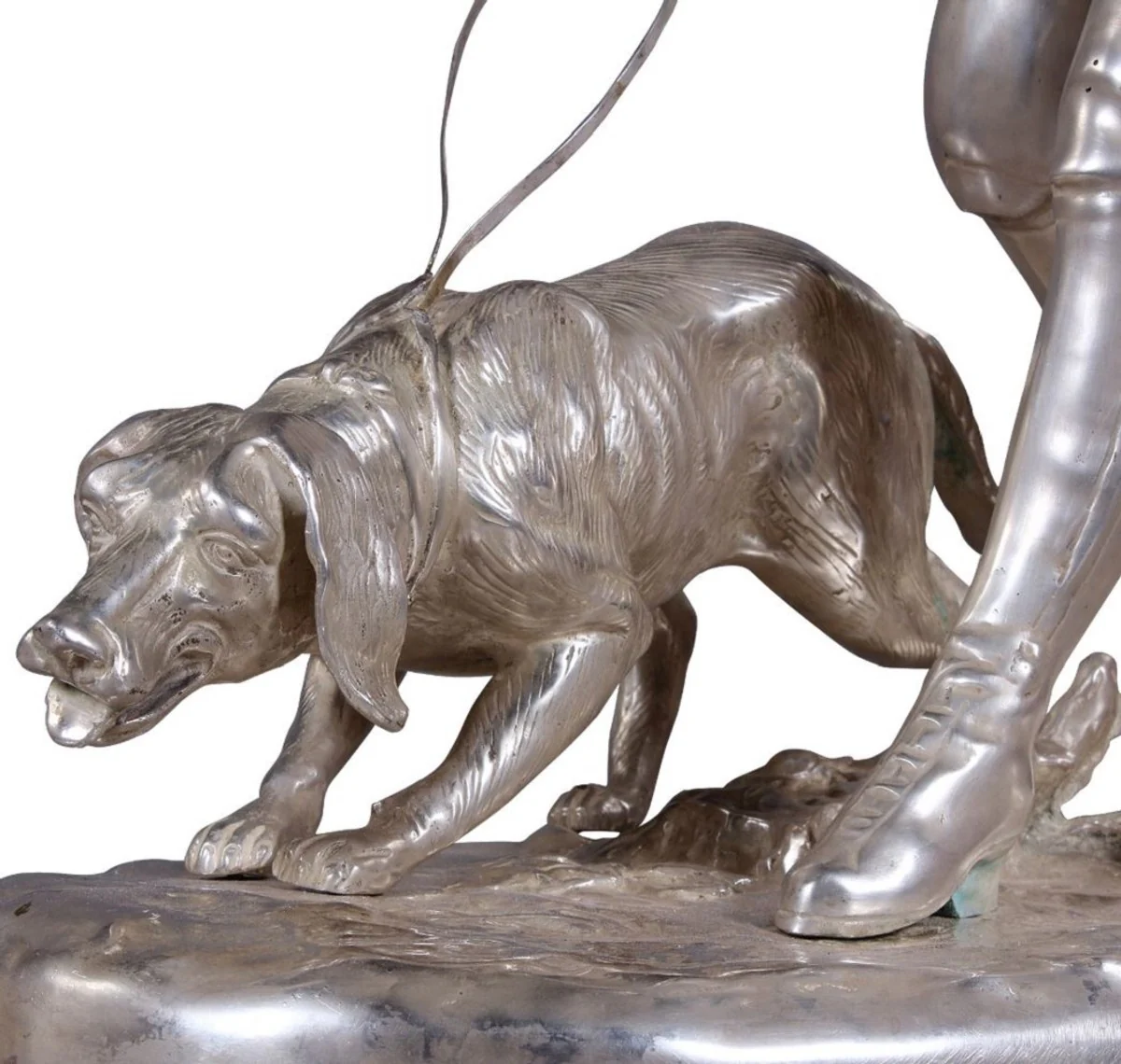 Casa Padrino figura de bronce de lujo cazador con perro plata / negro 45 x 28 x A. 61 cm - Escultura de bronce con base de mármol - Decoración de escritorio - Decoración sala de estar - Calidad de Lujo
