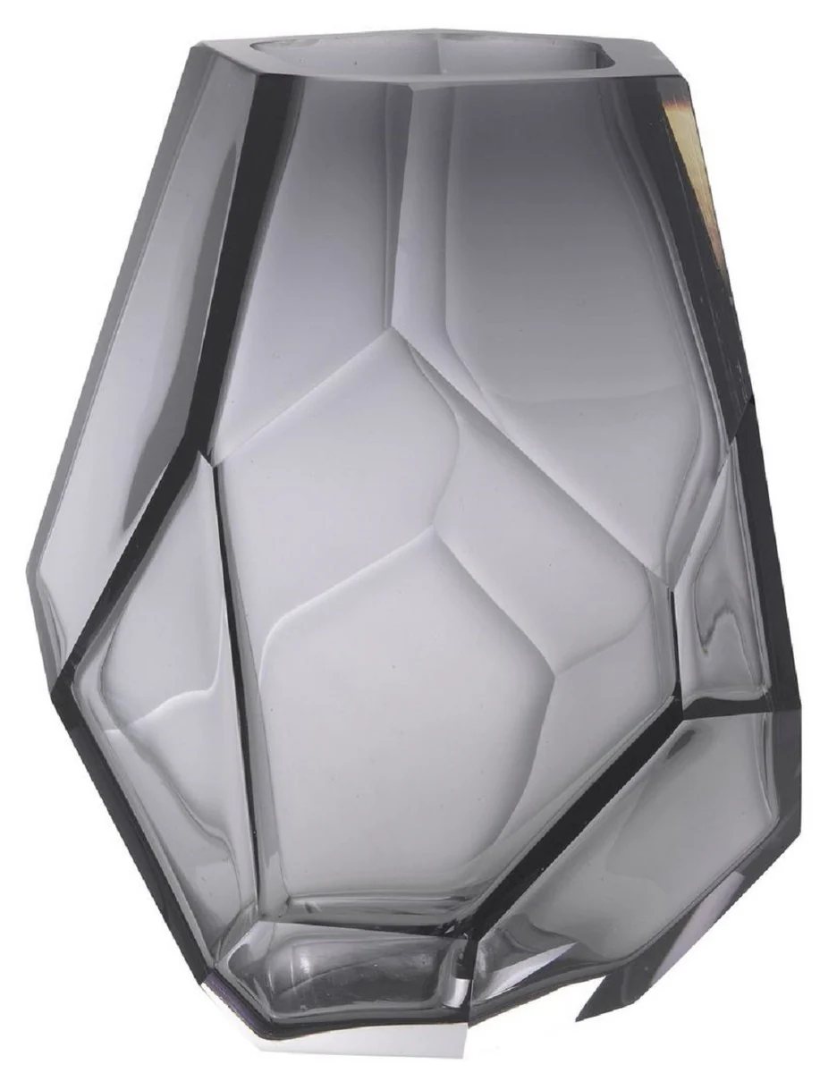 Casa Padrino florero de vidrio decorativo de lujo gris 18 x 16 x A. 22 cm - Elegante Florero Soplado a Mano - Accesorios de Decoración de Lujo