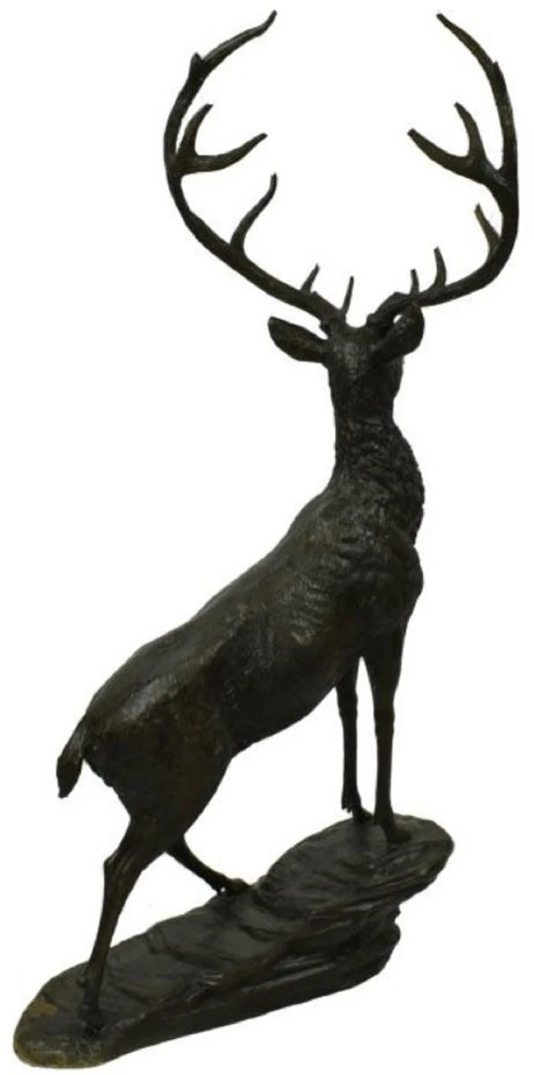 Casa Padrino escultura de bronce de lujo ciervo sobre roca bronce / negro 80 x 60 x A. 160 cm - Figura de Bronce - Figura Animal - Accesorios de Decoración de Hoteles y Restaurantes