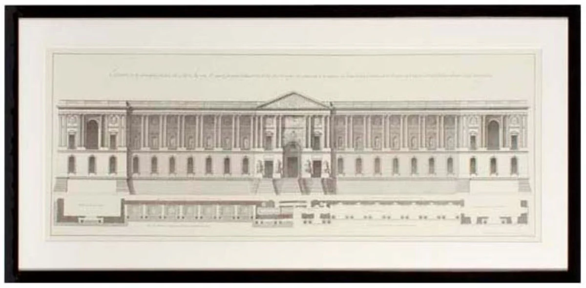 Casa Padrino Pictures / Art Print Set Fachada del Louvre Multicolor 109 x H. 52 cm - Decoración de la Sala de Estar de Lujo