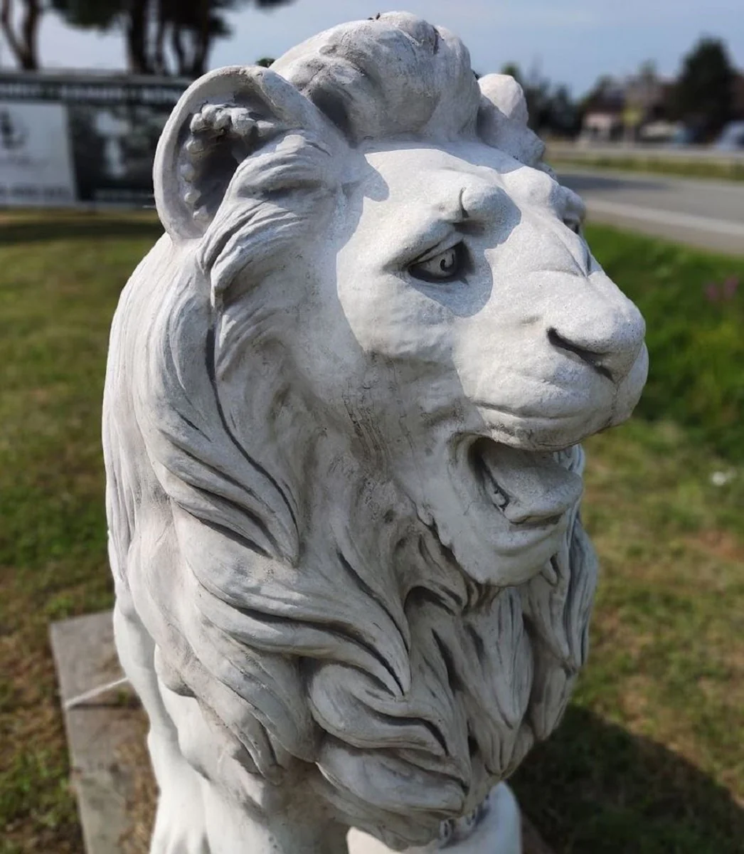 Casa Padrino escultura de decoración de jardín XXL león lado derecho gris 186 x A. 150 cm - Figura XXL de decoración de jardín enorme - Accesorios de decoración de jardín en estilo barroco