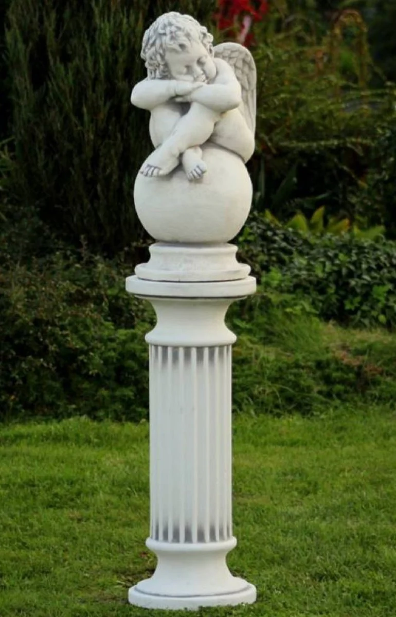 Casa Padrino pilar barroco con ángel en bola blanco / gris Ø 30 x A. 134 cm - Pilar de Jardín Barroco - Decoración Pilar de Piedra con Escultura - Accesorios de Decoración de Jardin Barrocos