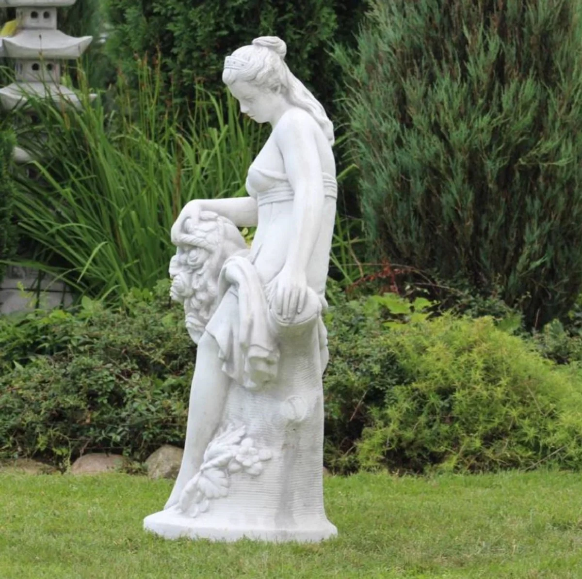 Casa Padrino Escultura de Decoración de Jardín Art Nouveau Mujer con Ramo de Flores Blanco / Gris 46 x 46 x A. 121 cm - Accesorios de Decoración de Jardín Barrocos y Art Nouveau