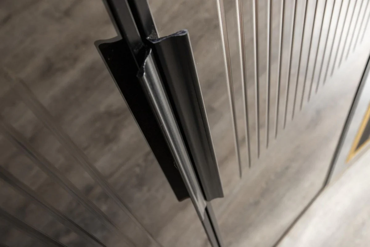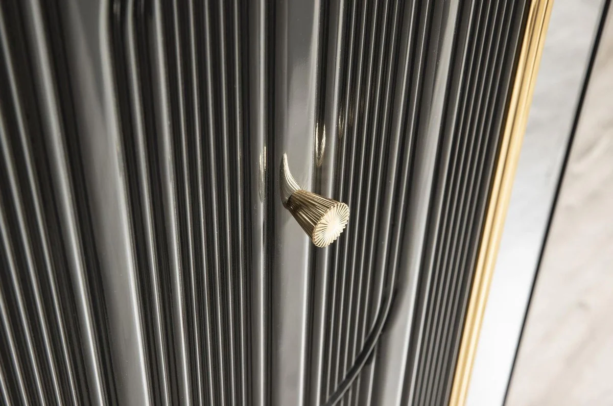 Casa Padrino armario de dormitorio Art Deco de lujo gris / oro 265 x 67 x A. 220 cm - Armario noble de madera maciza con 6 puertas con espejo - Muebles de dormitorio - Calidad de Lujo