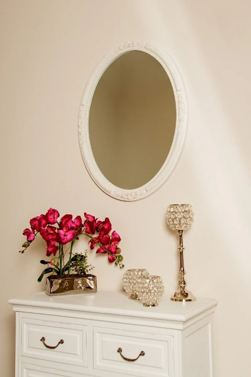 Casa Padrino Espejo Barroco Blanco / Oro 57 x H. 77 cm - Espejo Ovalado de Pared Barroco con Marco de Madera