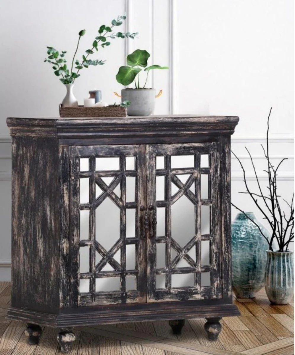 Casa Padrino armario de estilo campestre negro vintage 90 x 43 x A. 100 cm - Armario de madera maciza con 2 puertas de espejo - Muebles de Estilo Campestre