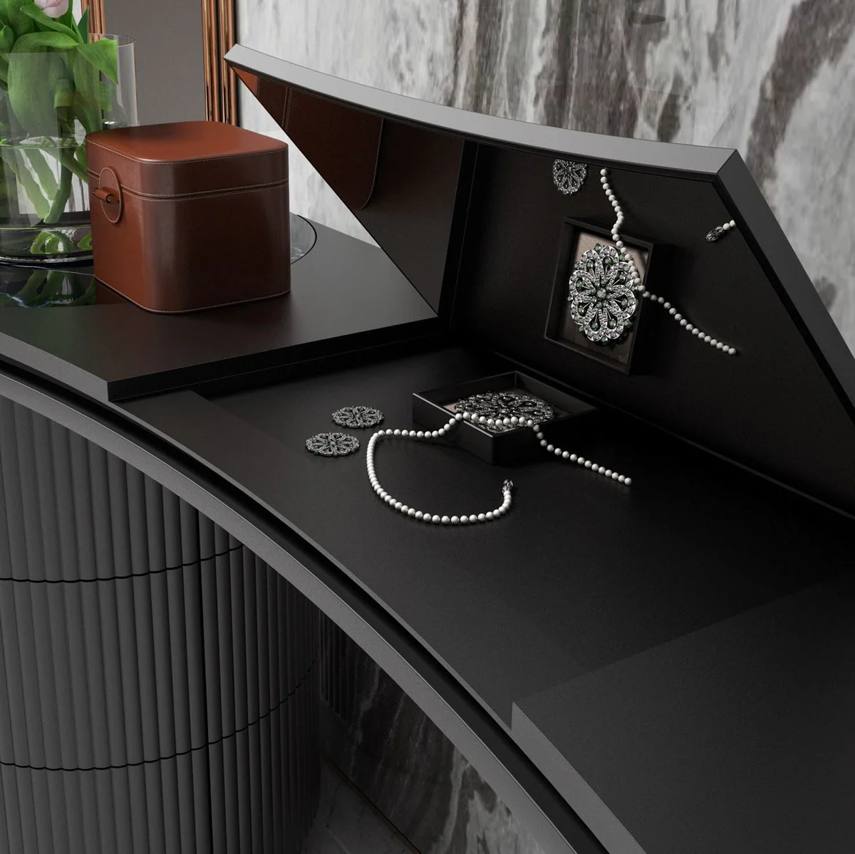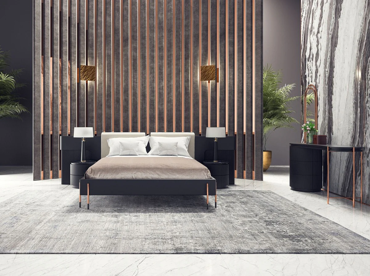 Casa Padrino conjunto de dormitorio de lujo negro mate / cobre - 1 Tocador de Lujo con Espejo de Maquillaje y 1 Taburete de Lujo - Muebles de dormitorio - Muebles de hotel - Muebles de lujo