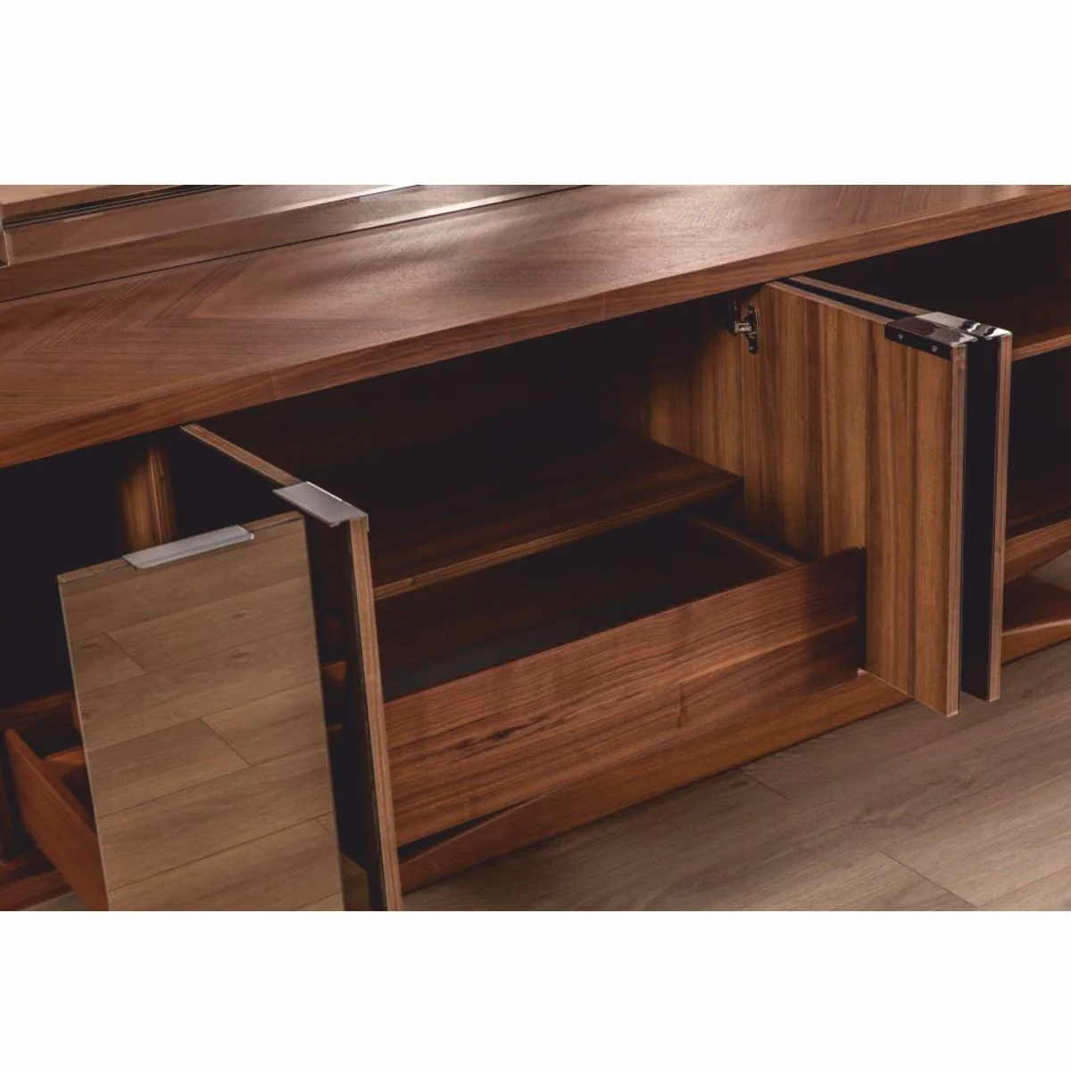 Casa Padrino conjunto de muebles de lujo marr¨®n / negro - 1 Aparador con 4 Puertas y 1 Espejo - Muebles modernos de madera maciza - Colecci¨®n de Lujo