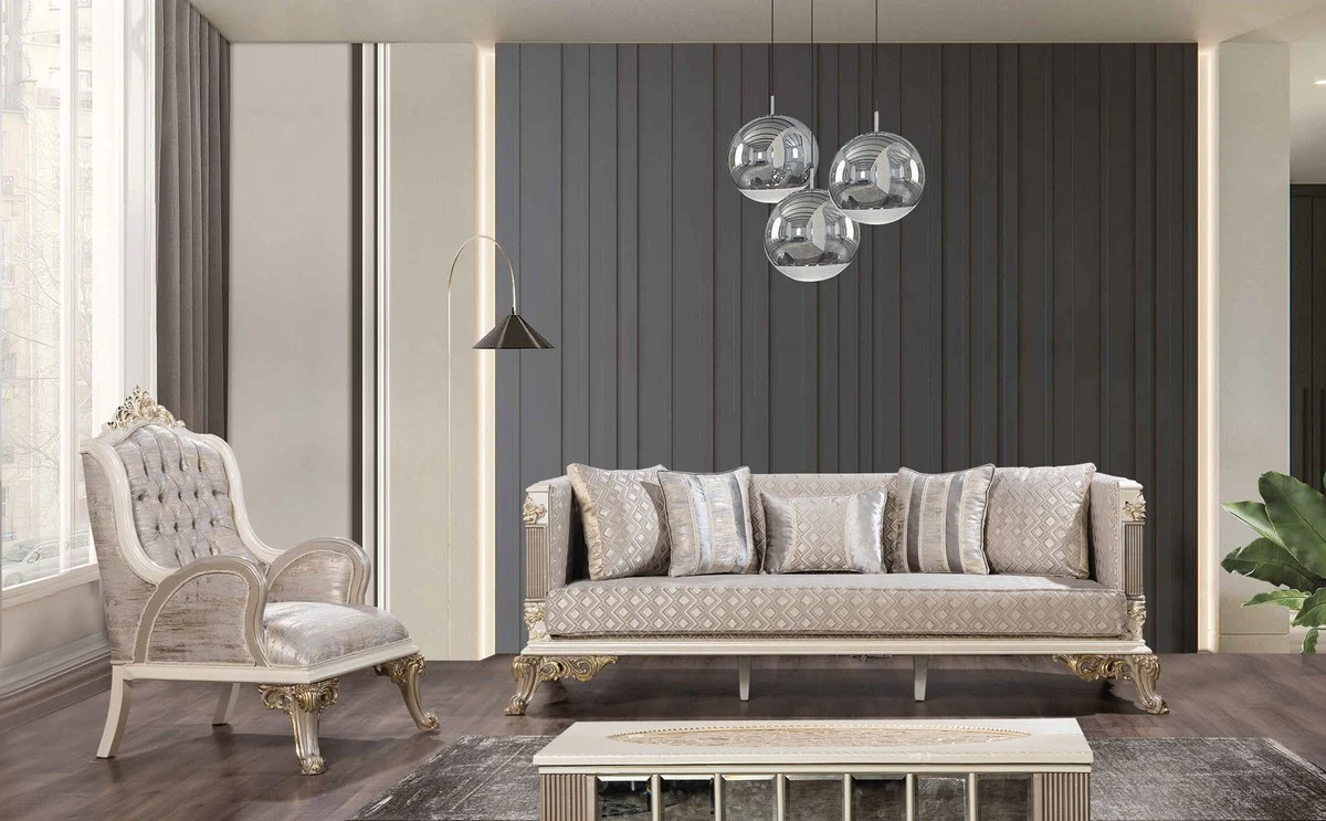Casa Padrino Conjunto de Dormitorio Barroco de Lujo Blanco / Oro - 1 Tocador Barroco y 1 Espejo de Pared Barroco y 1 Taburete Barroco - Muebles de Dormitorio - Calidad de Lujo - Hecho en Italia