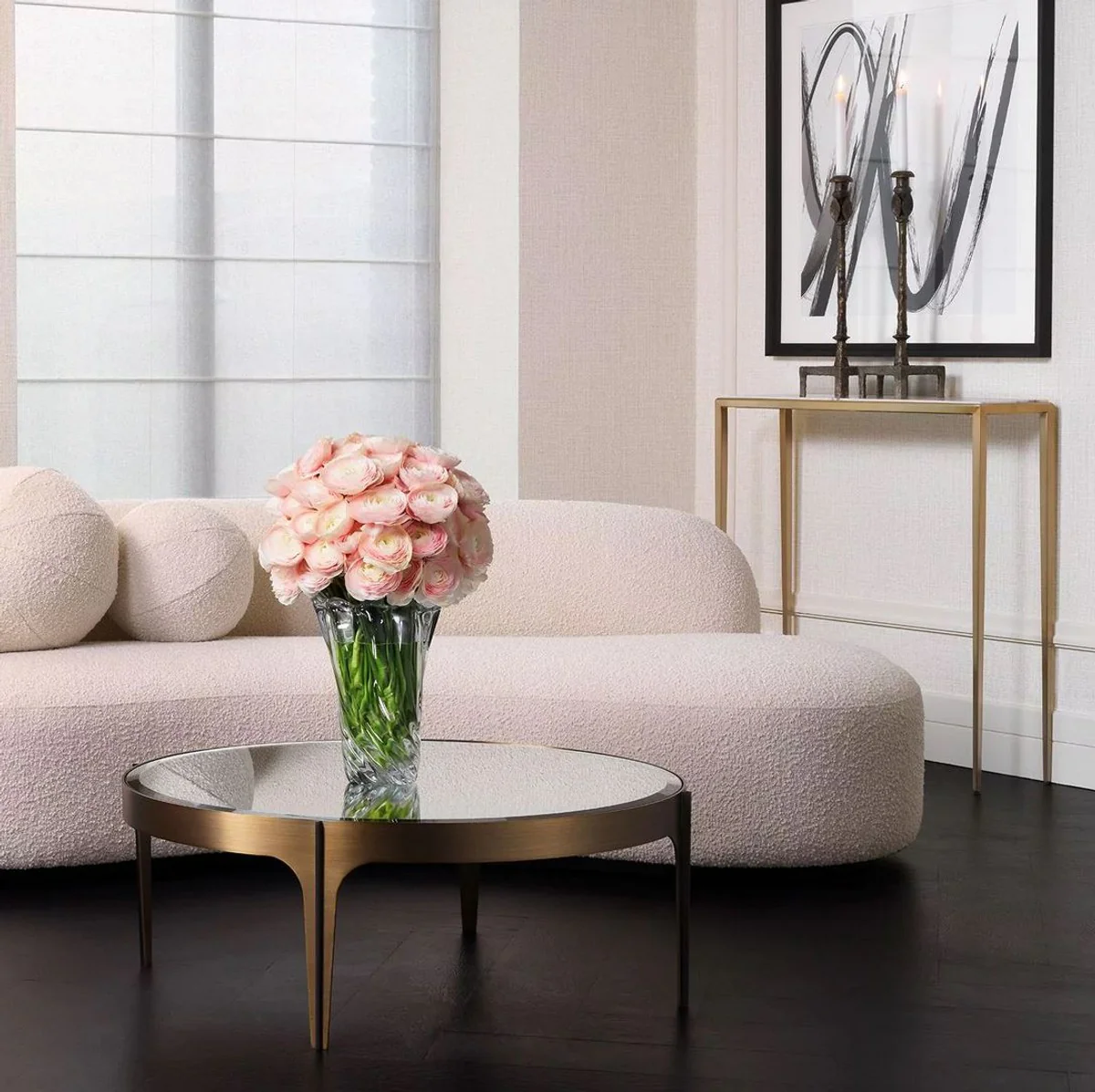 Casa Padrino mesa de centro de lujo lat¨®n / bronce ? 94 x A. 34,5 cm - Mesa de sal¨®n redonda de acero inoxidable con tablero de cristal de espejo - Muebles de sal¨®n de lujo