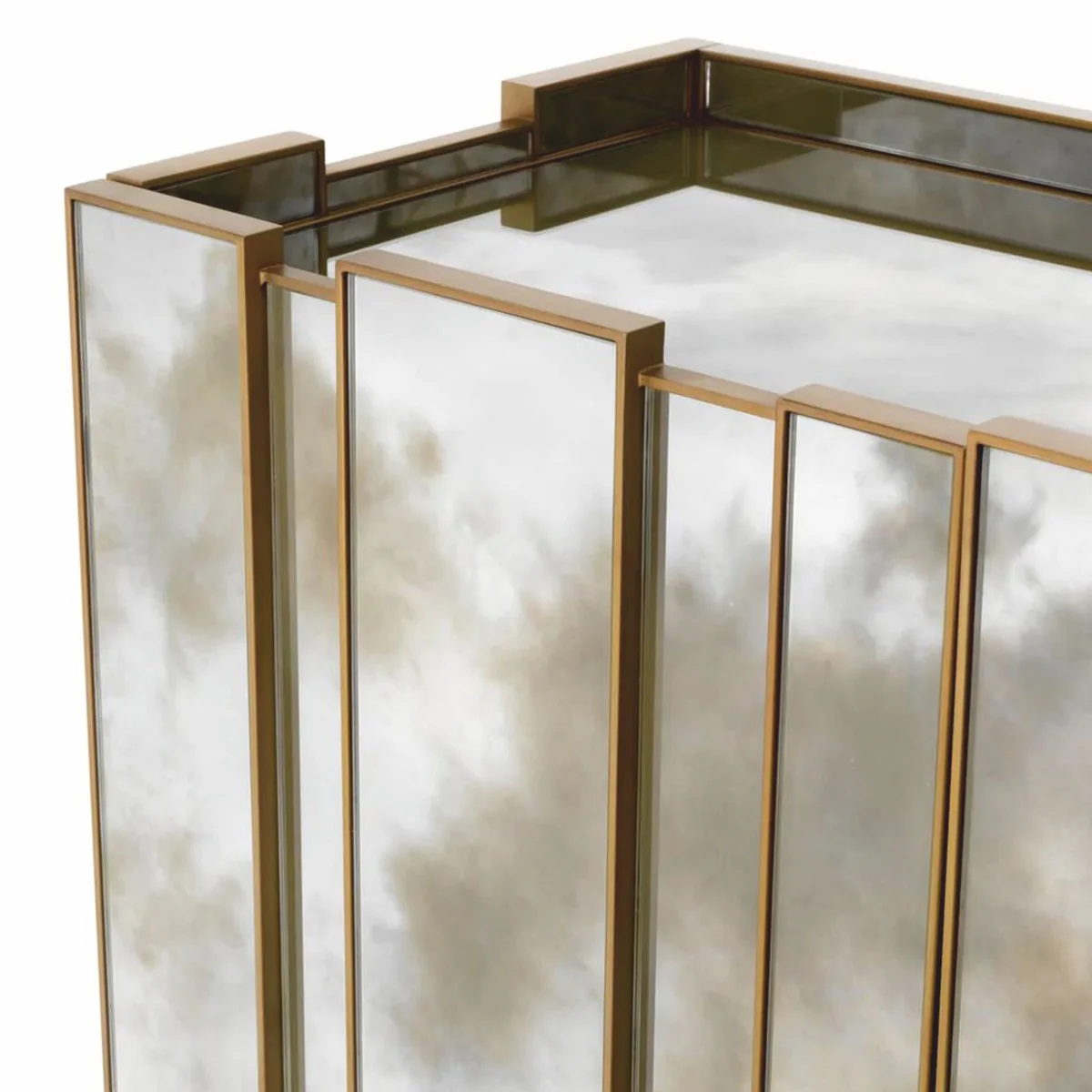Casa Padrino mesa de centro de lujo lat¨®n 75 x 75 x H. 48 cm - Mesa de Centro de Acero Inoxidable con Tapas de Vidrio y Espejo de Vidrio - Muebles de Sal¨®n de Lujo