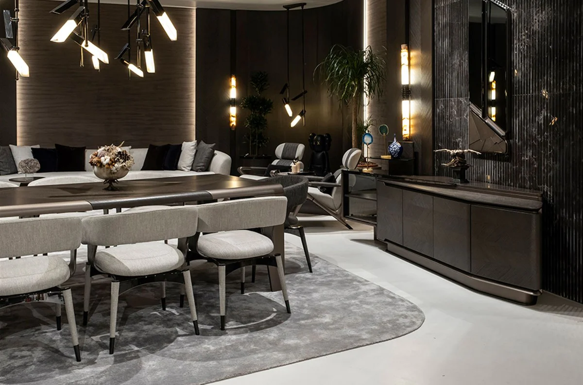 Casa Padrino conjunto de muebles de lujo gris / marr¨®n / oro - 1 Aparador de Lujo con 4 Puertas y 1 Espejo de Lujo Redondo - Muebles de lujo - Colecci¨®n de lujo