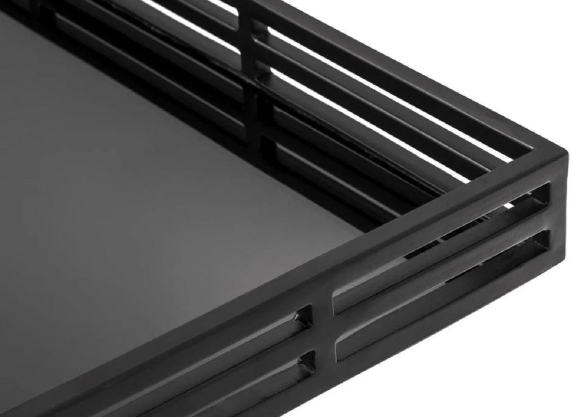 Casa Padrino bandeja de servicio de lujo negro mate / negro 56 x 36 x H. 5 cm - Bandeja de Acero Inoxidable con Espejo Negro