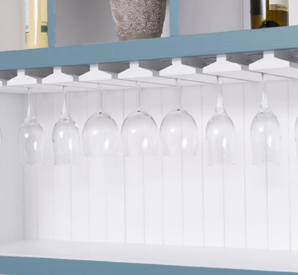 Casa Padrino armario de bar de madera maciza de estilo campestre azul / blanco 103 x 36 x A. 210 cm - Gabinete de vino de madera maciza estilo campestre - Mueble bar de estilo campestre