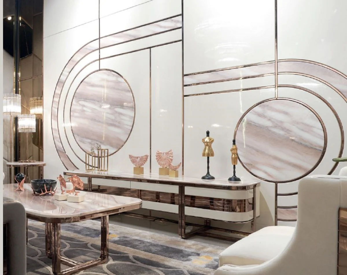 Casa Padrino gabinete de TV de lujo crema / blanco / cobre 230 x 54,5 x A. 55 cm - Aparador de madera maciza con 4 cajones - Muebles de sal¨®n - Muebles de hotel - Muebles de lujo - Muebles de lujo
