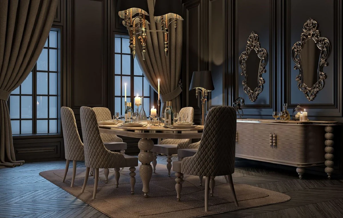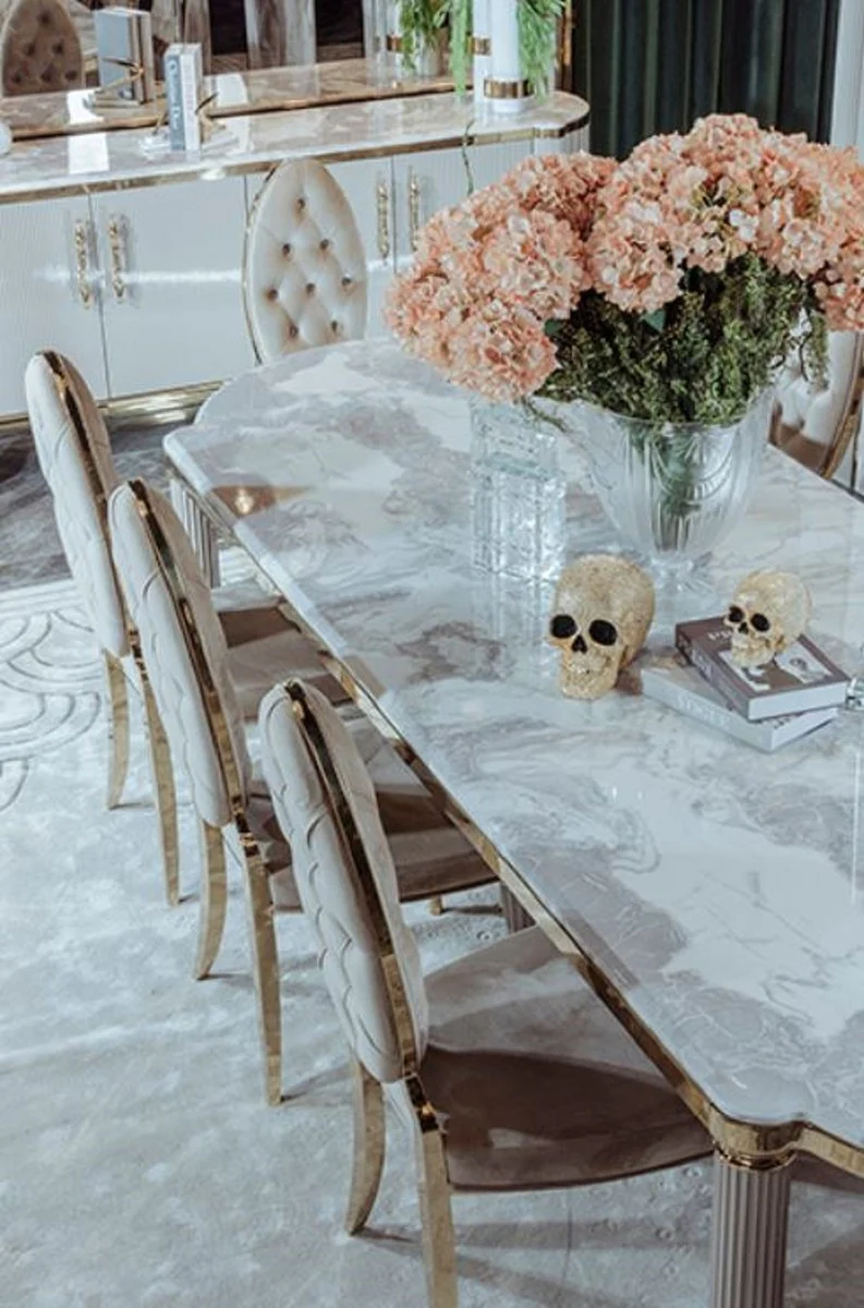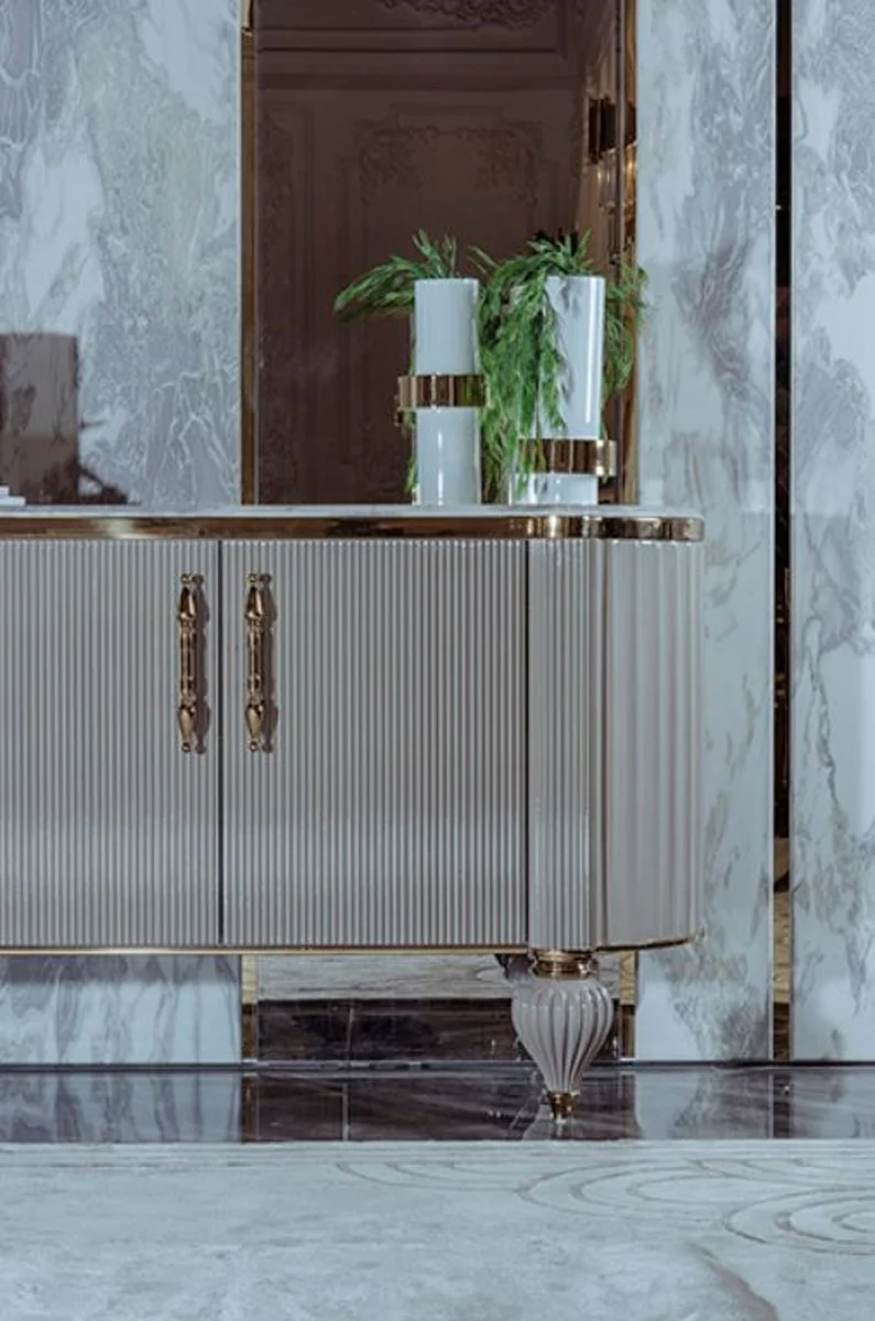 Casa Padrino aparador Art Deco de lujo blanco / gris / oro 246 x 60 x A. 89 cm - Gabinete noble de madera maciza con 4 puertas y tapa de m¨¢rmol artificial - Muebles Art Deco - Calidad de Lujo