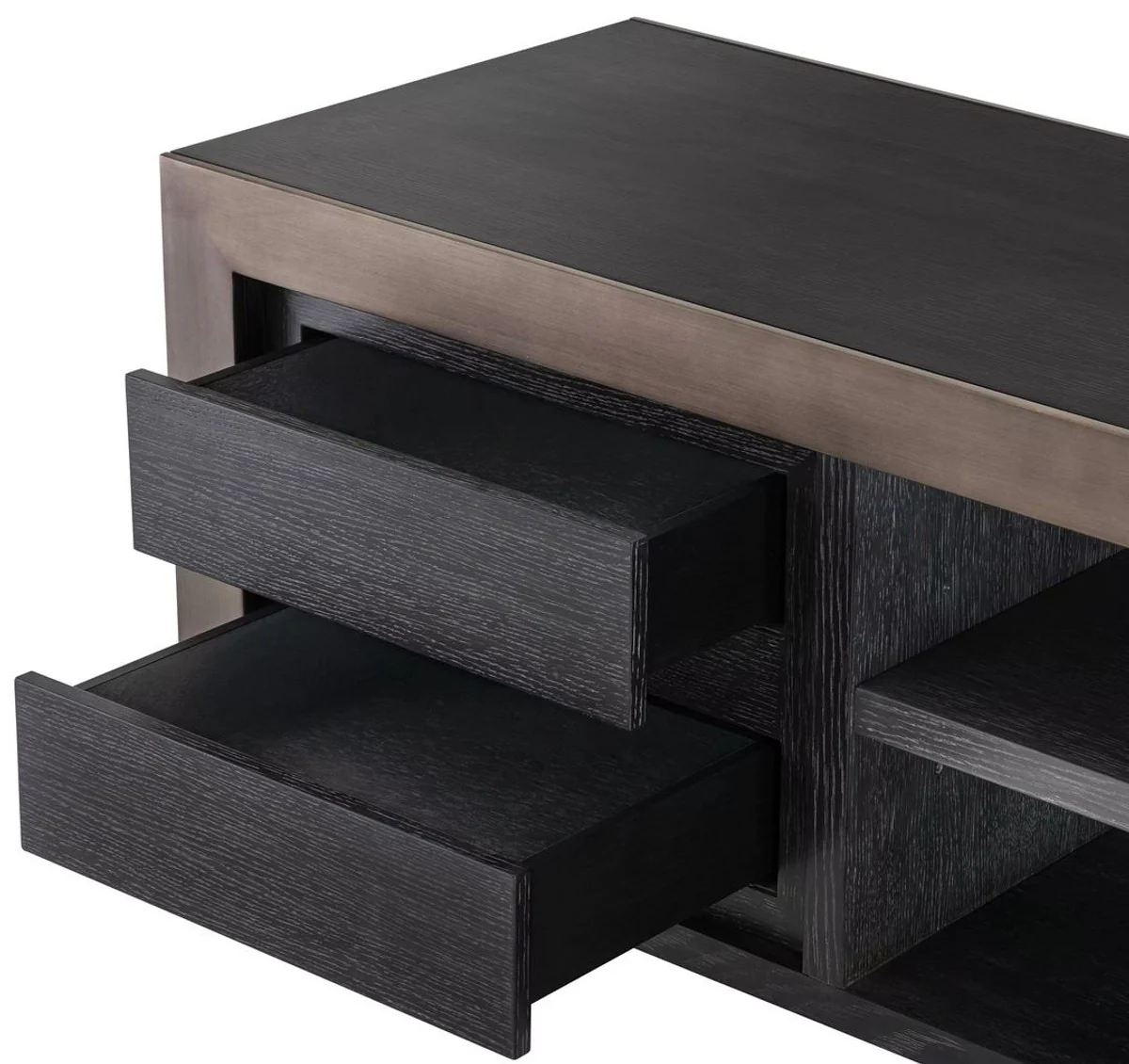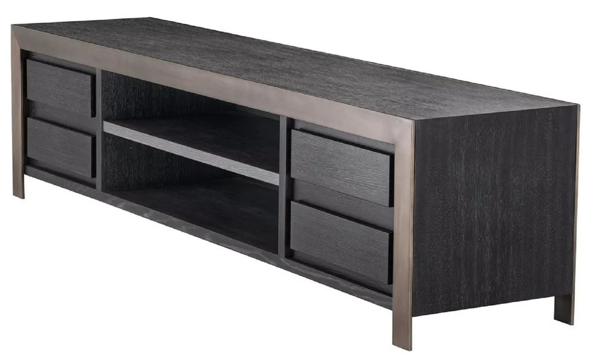 Casa Padrino gabinete de TV de lujo negro gris / bronce 240 x 50 x A. 55,5 cm - Aparador de madera maciza con 4 cajones - Muebles de sal¨®n - Muebles de hotel - Colecci¨®n de Lujo