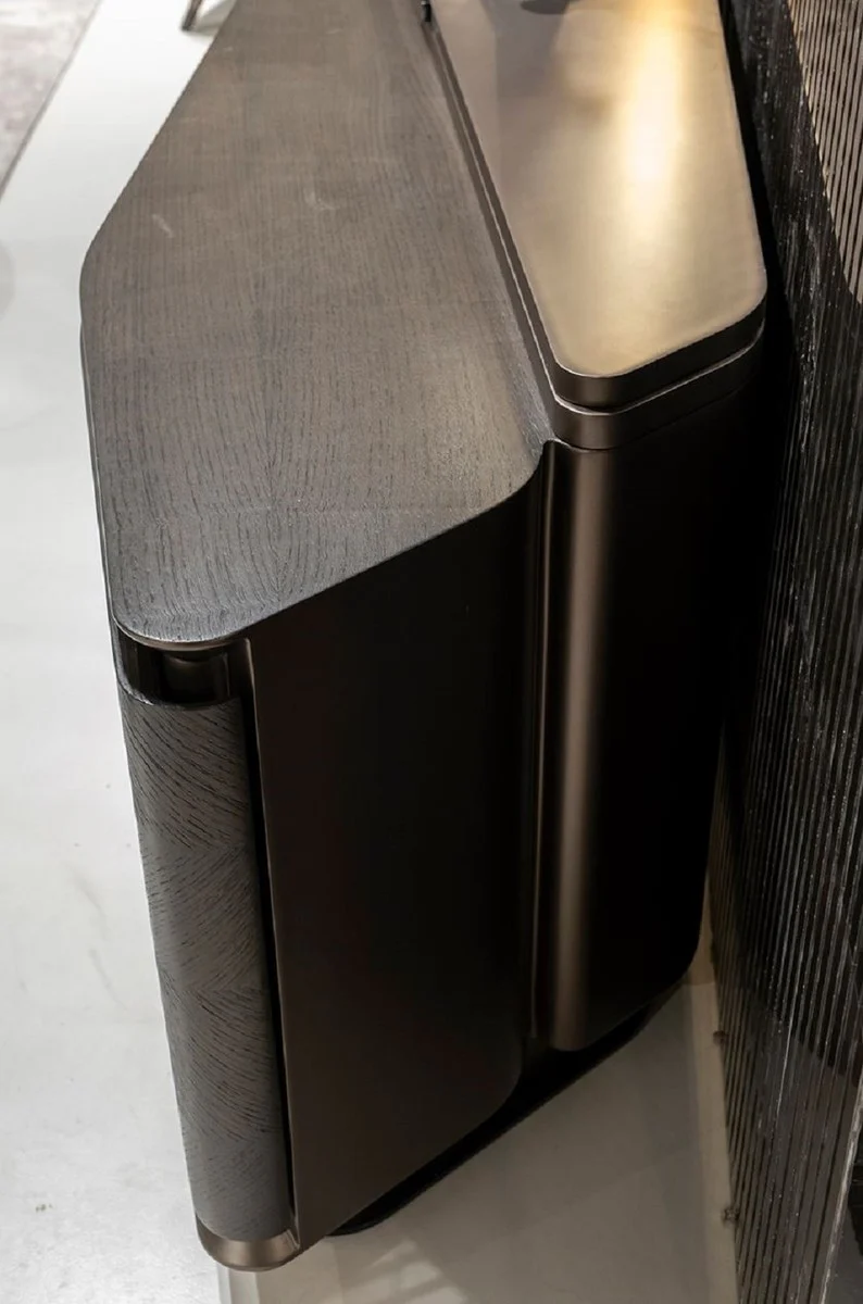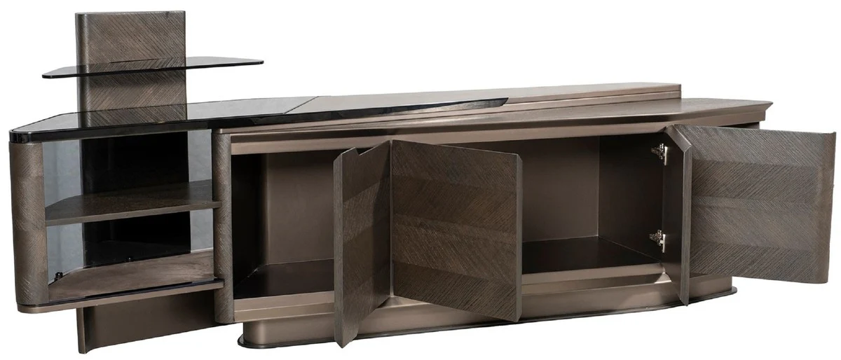 Casa Padrino aparador de lujo marr¨®n oscuro / bronce / negro 260,8 x 57,3 x A. 90,3 cm - Gabinete de madera maciza con 4 puertas - Muebles de hotel - Muebles de lujo - Calidad de lujo
