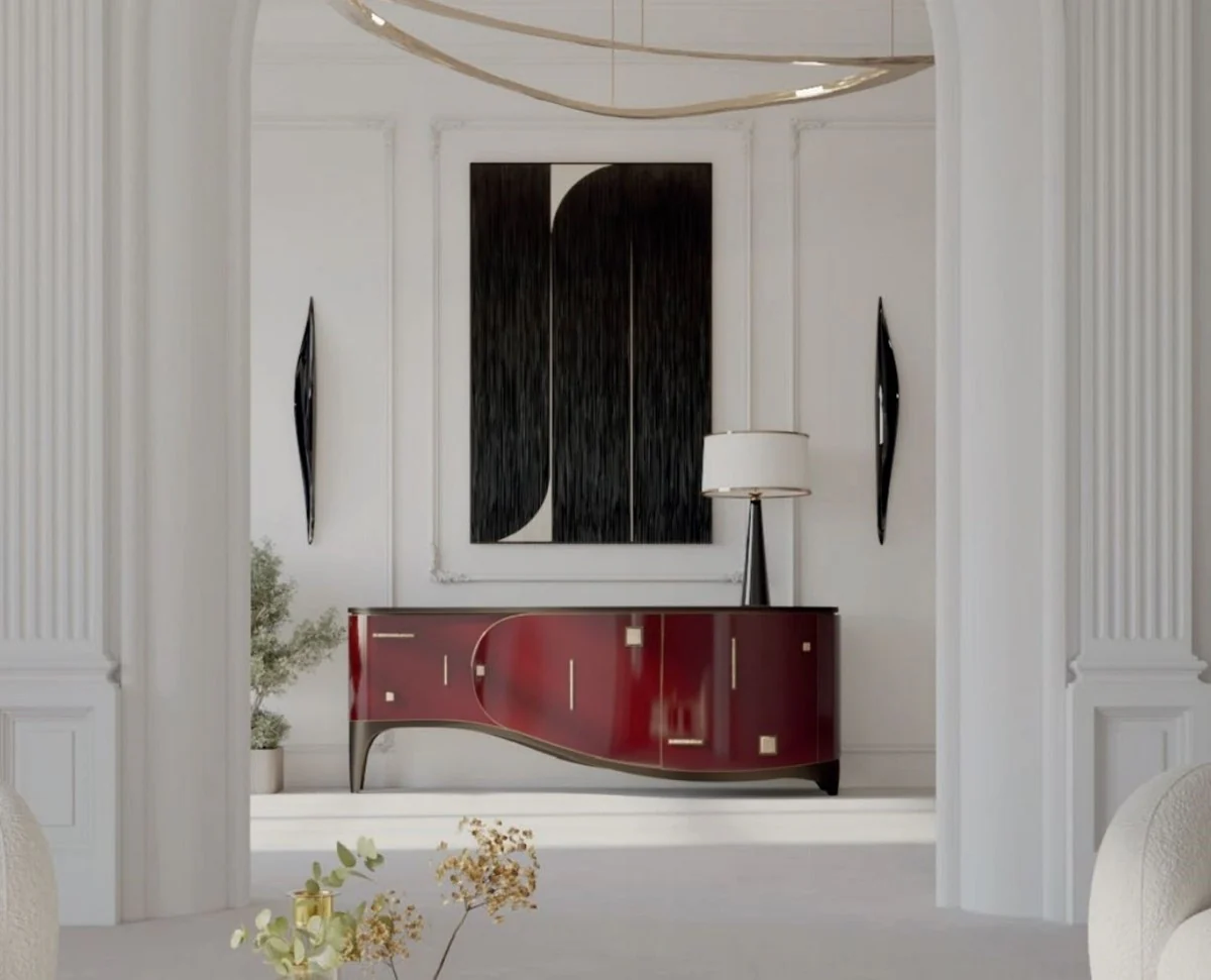 Casa Padrino aparador Art Deco de lujo rojo / negro / lat¨®n 195 x 55 x A. 75 cm - Gabinete noble de madera maciza - Muebles Art D¨¦co - Muebles de hotel - Muebles de lujo
