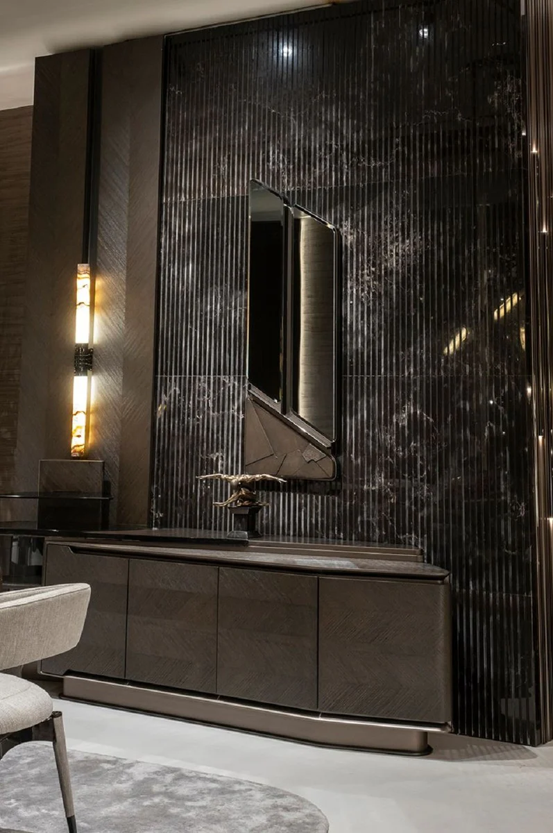 Casa Padrino aparador Art Deco de lujo azul oscuro / negro / lat¨®n 195 x 55 x A. 75 cm - Gabinete noble de madera maciza - Muebles Art D¨¦co - Muebles de hotel - Muebles de lujo