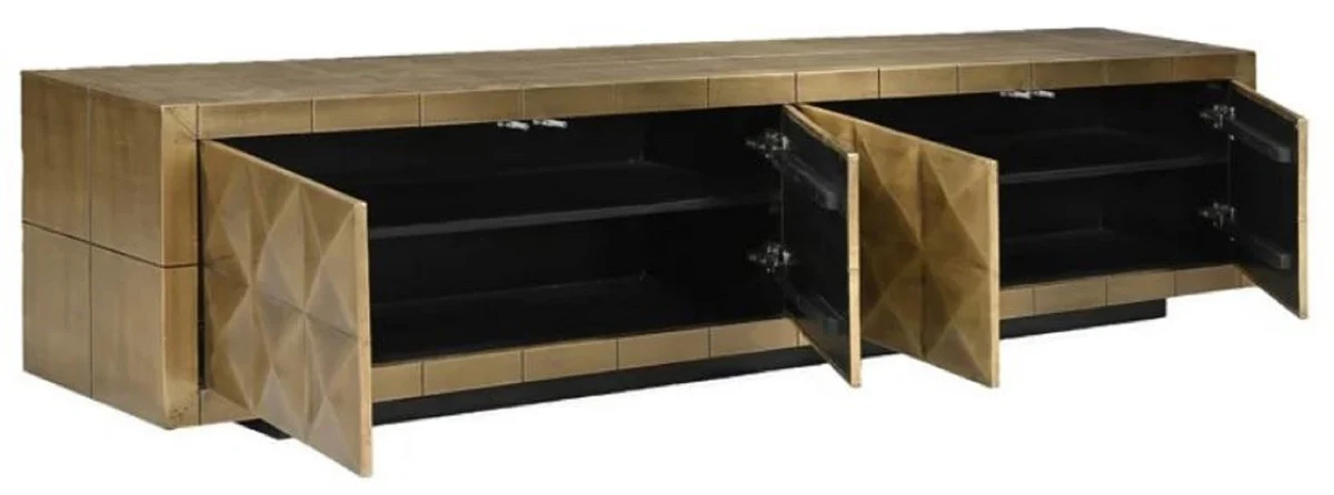 Casa Padrino gabinete de TV de lujo oro / negro 220 x 40 x A. 50 cm - Aparador de sal¨®n con 4 puertas - Muebles de sal¨®n - Muebles de lujo - Interiores de lujo