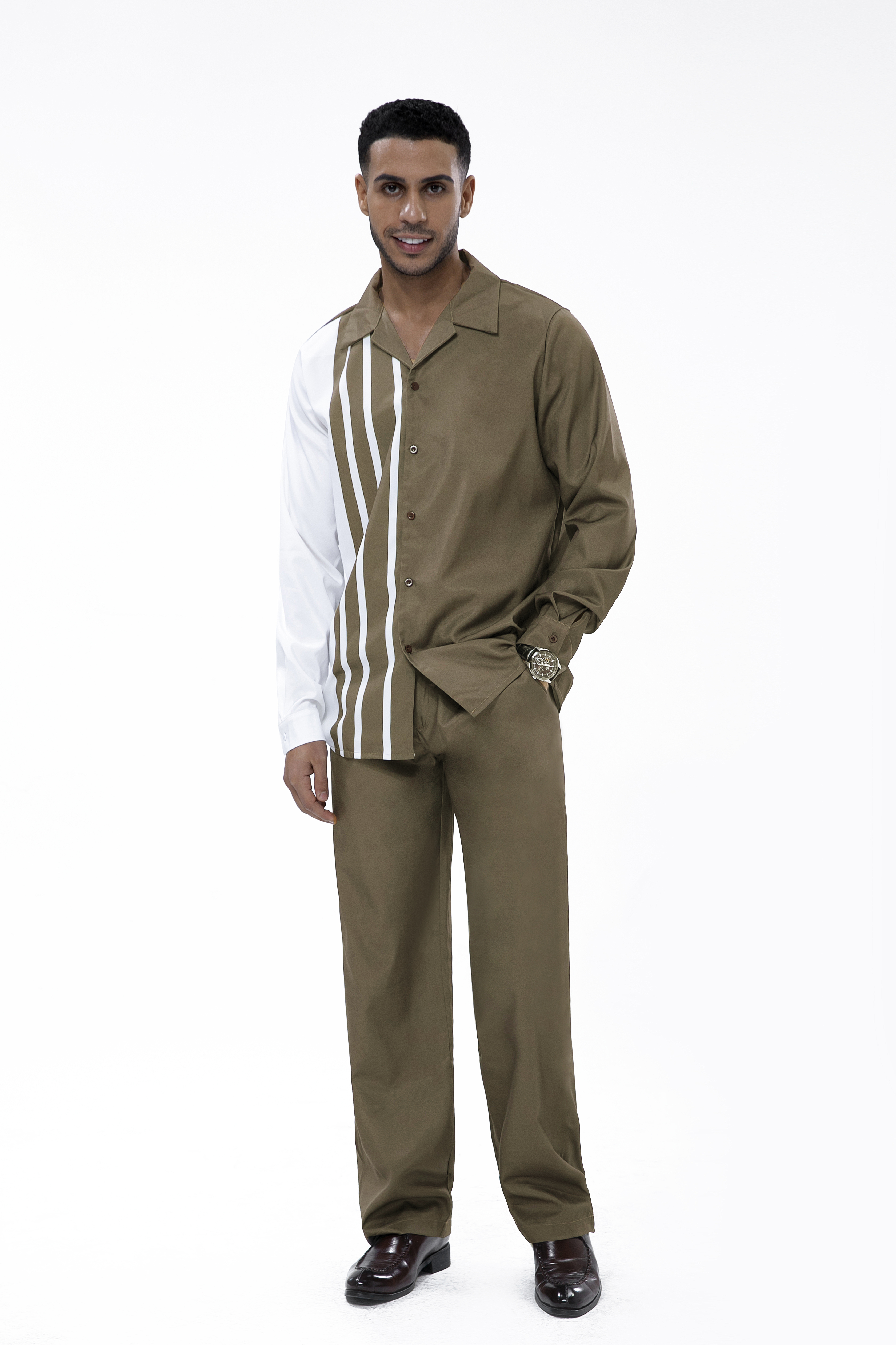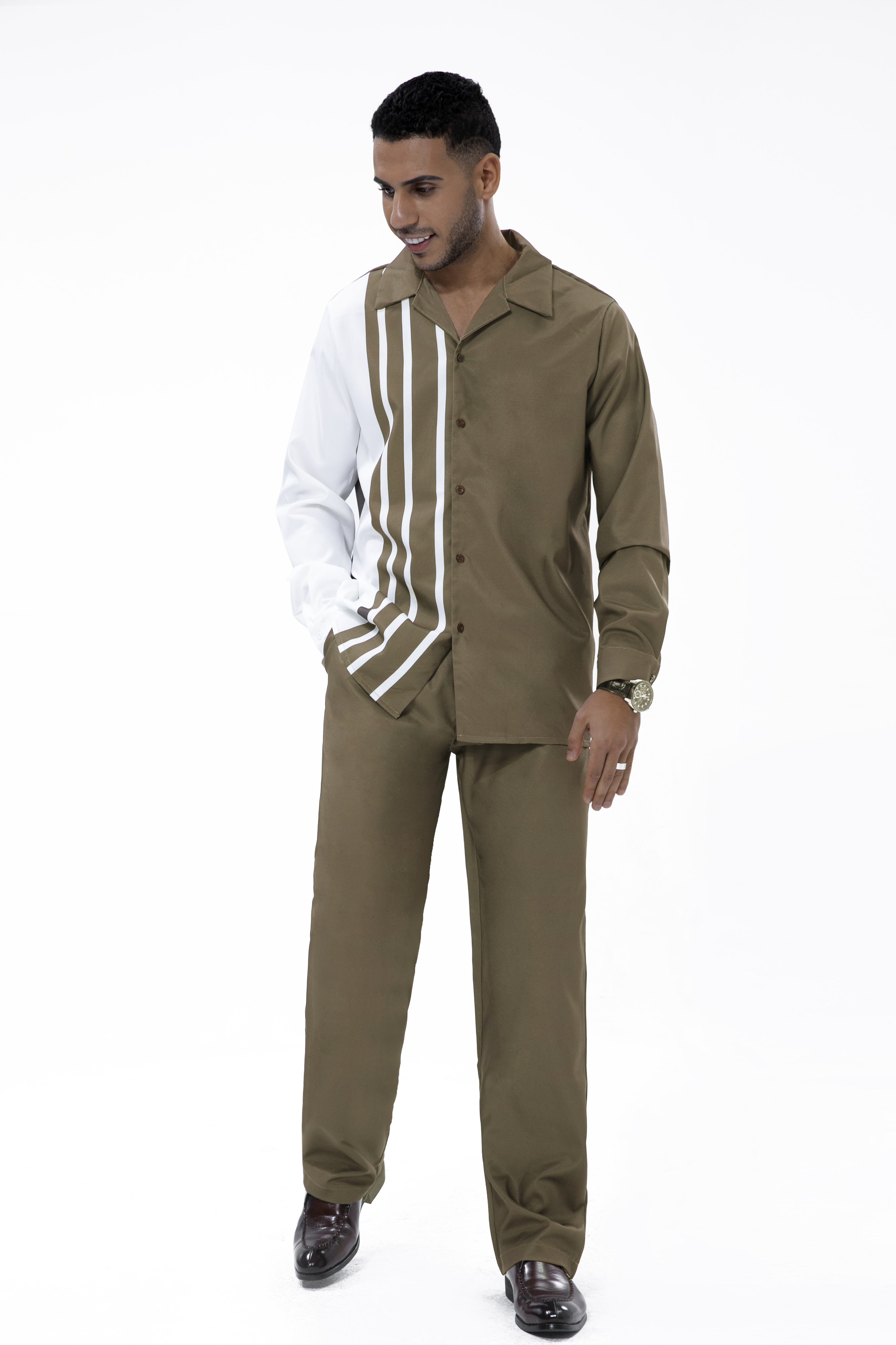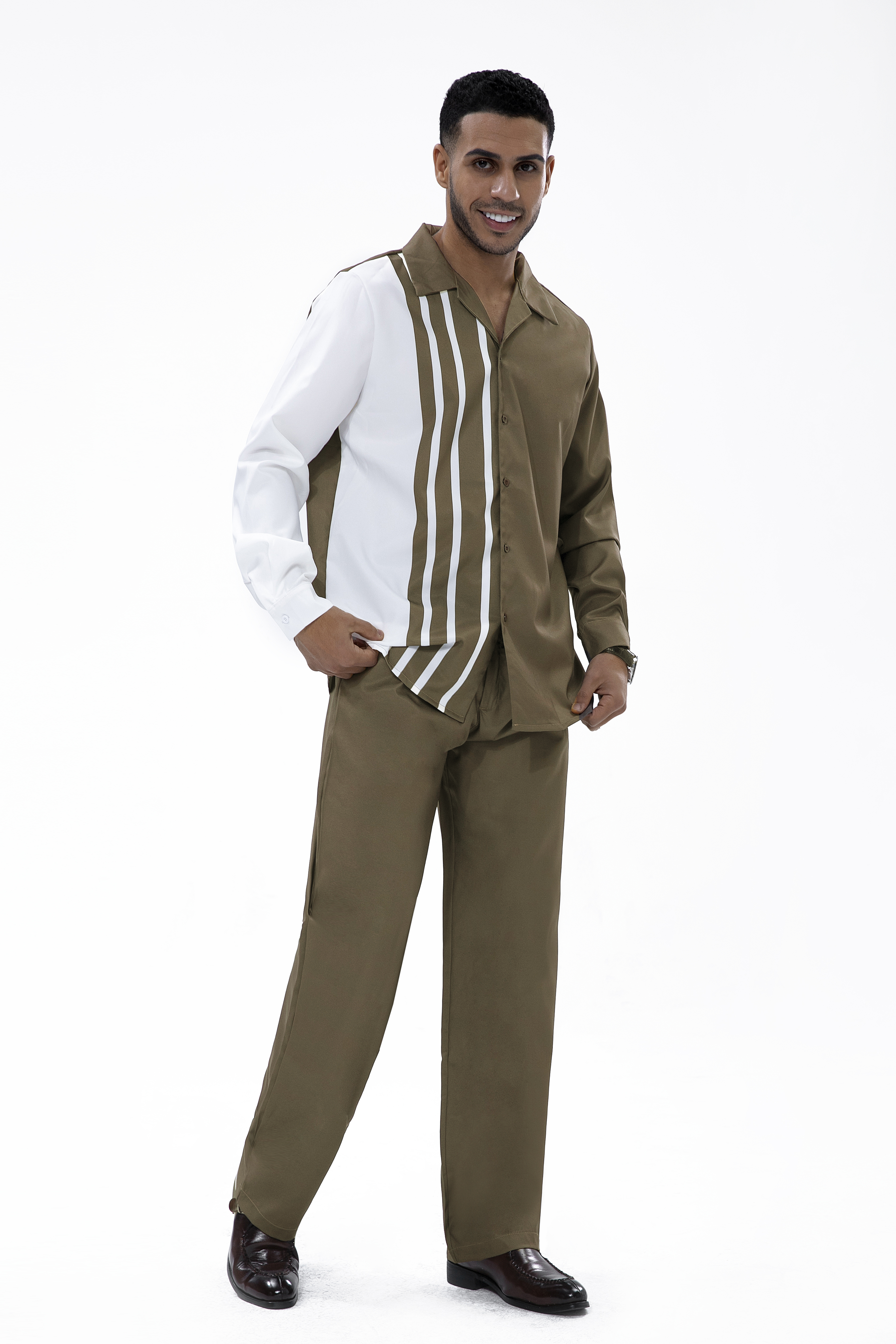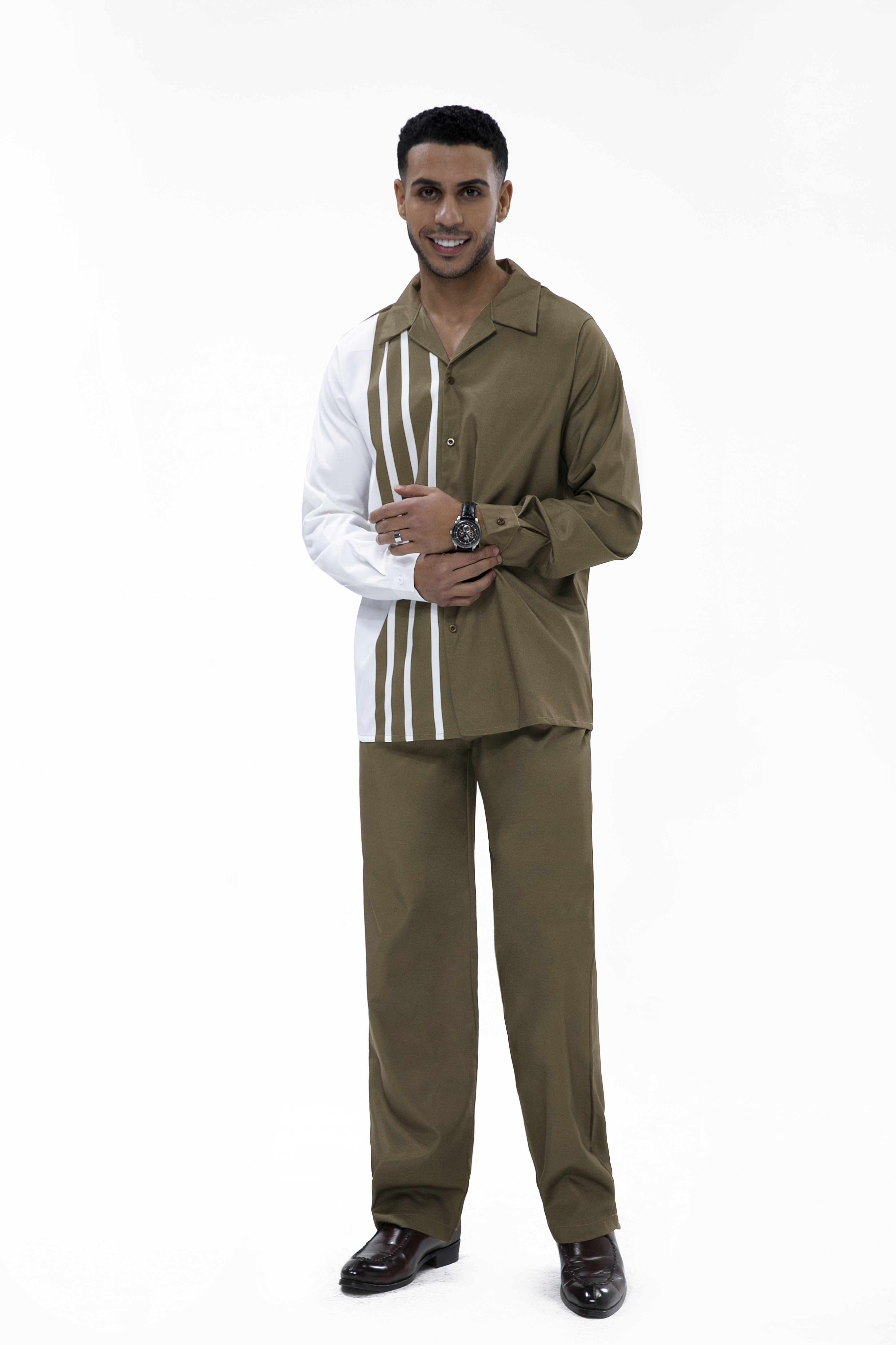 Suitmens Olive Stripe Colorblock Walking Set 2-Piece Long Sleeve Set