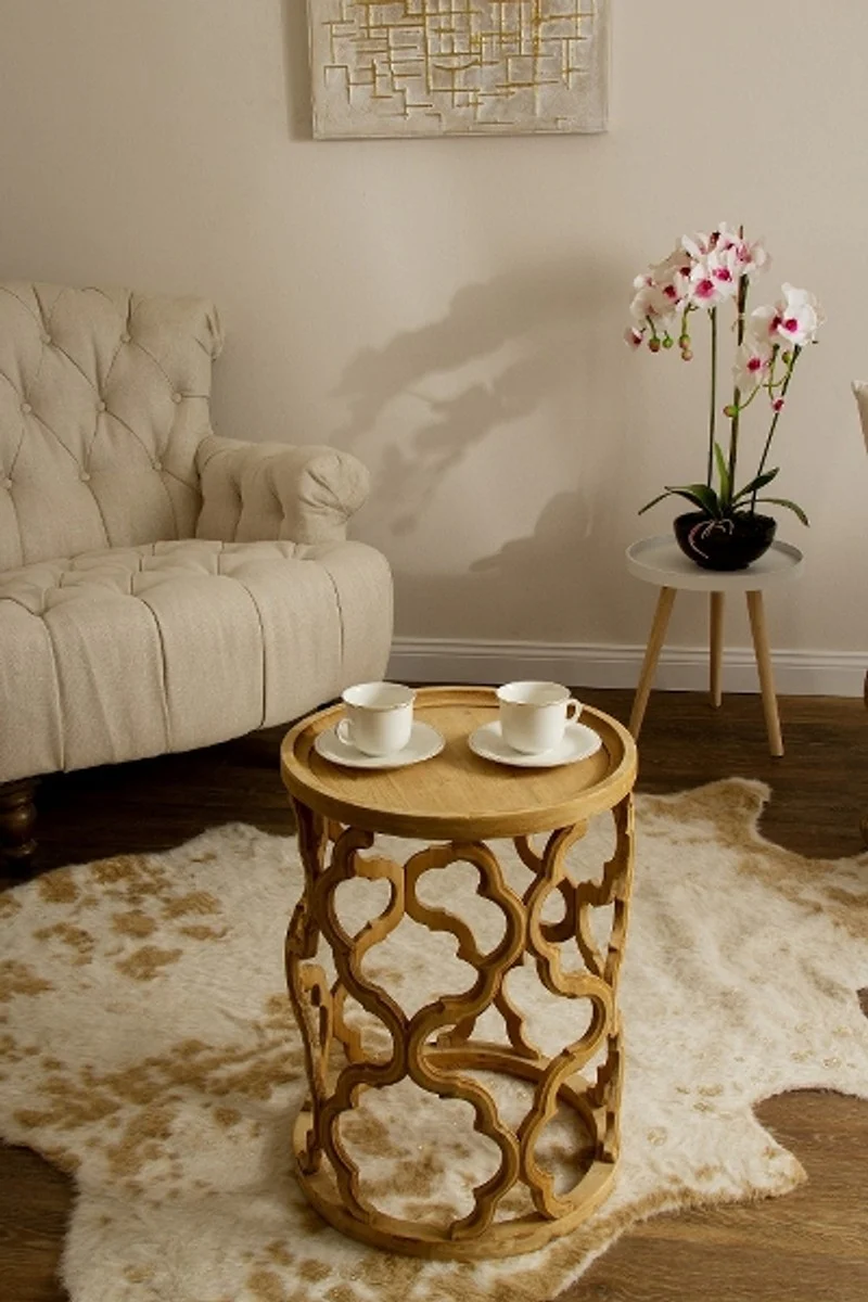 Casa Padrino mesa auxiliar de diseño colores naturales Ø 40 x H. 54 cm - Mesa de Madera Redonda Moderna
