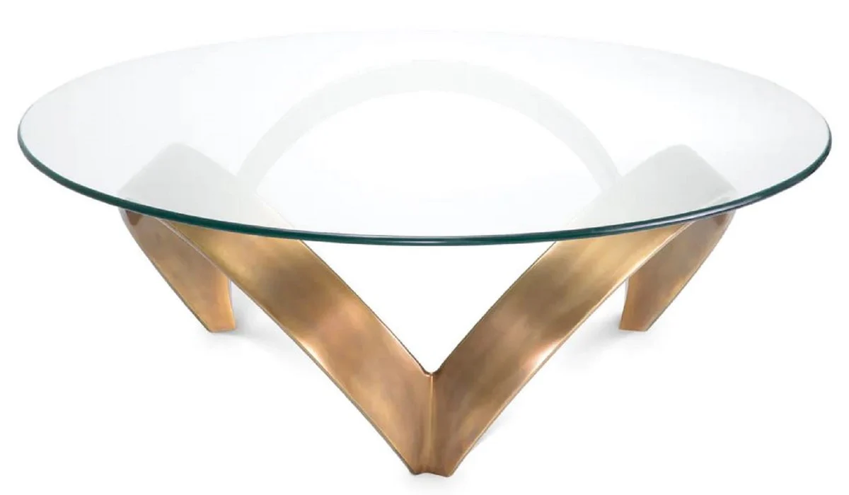 Casa Padrino mesa de centro de lujo lat¨®n vintage ? 110 x A. 36,5 cm - Mesa de sal¨®n redonda de aluminio con tapa de vidrio - Muebles de sal¨®n - Muebles de hotel - Muebles de lujo
