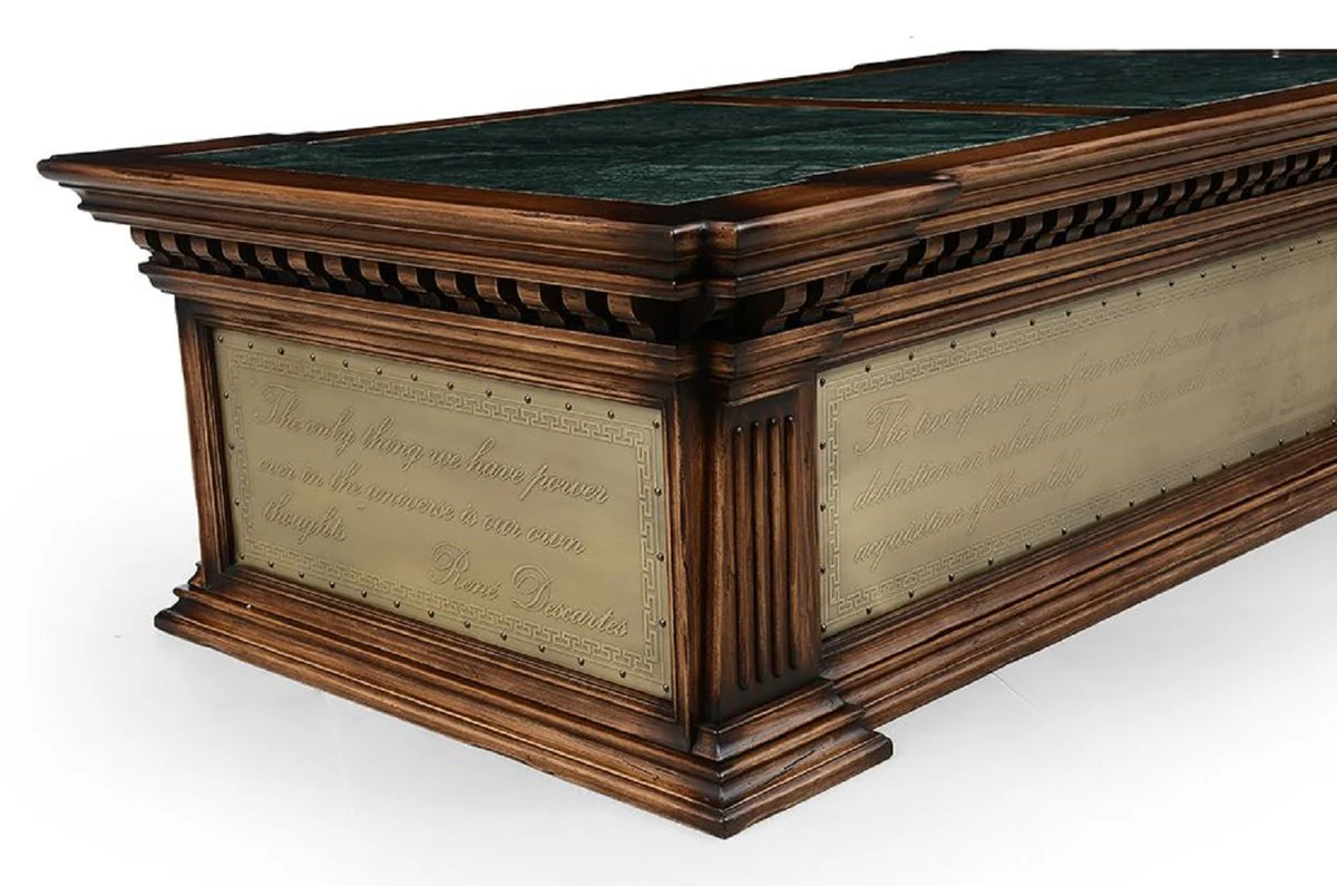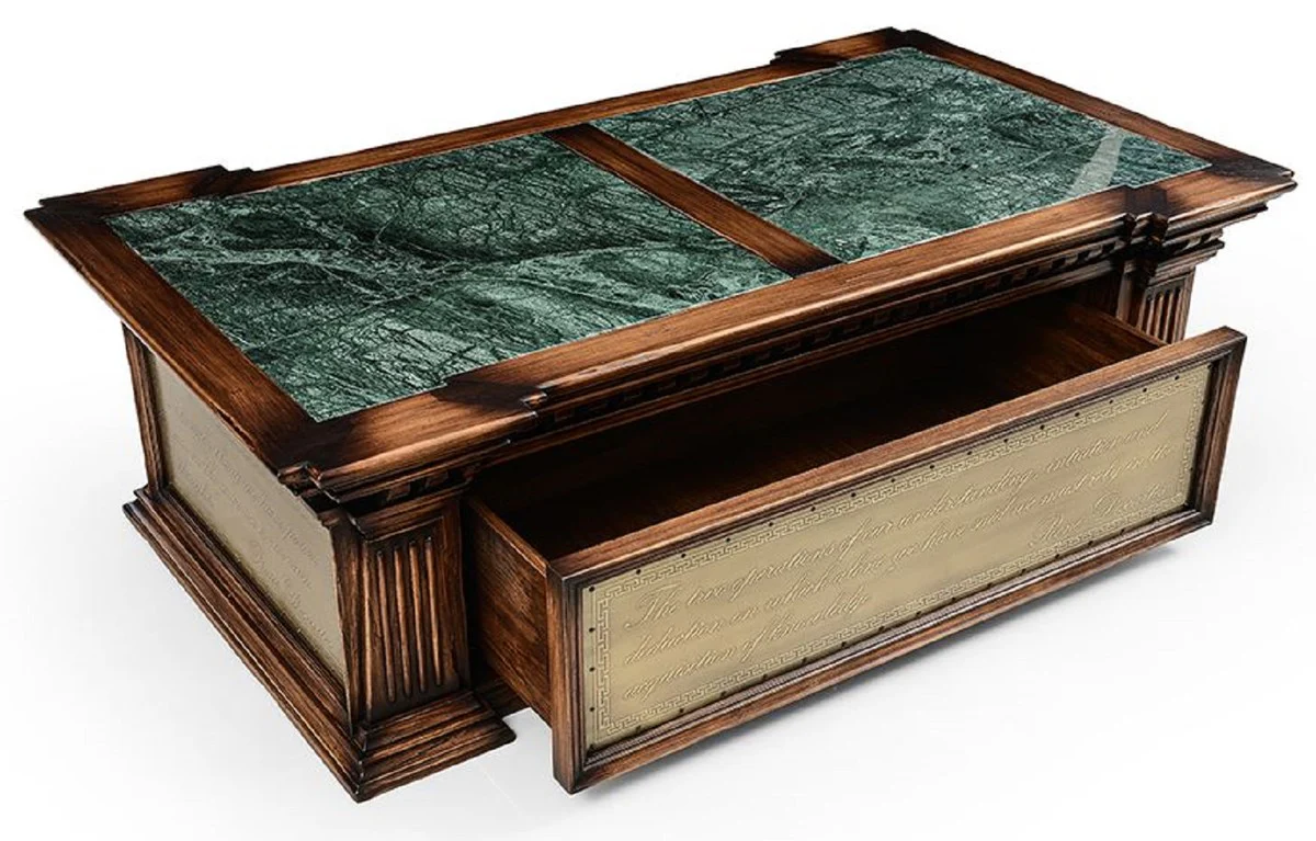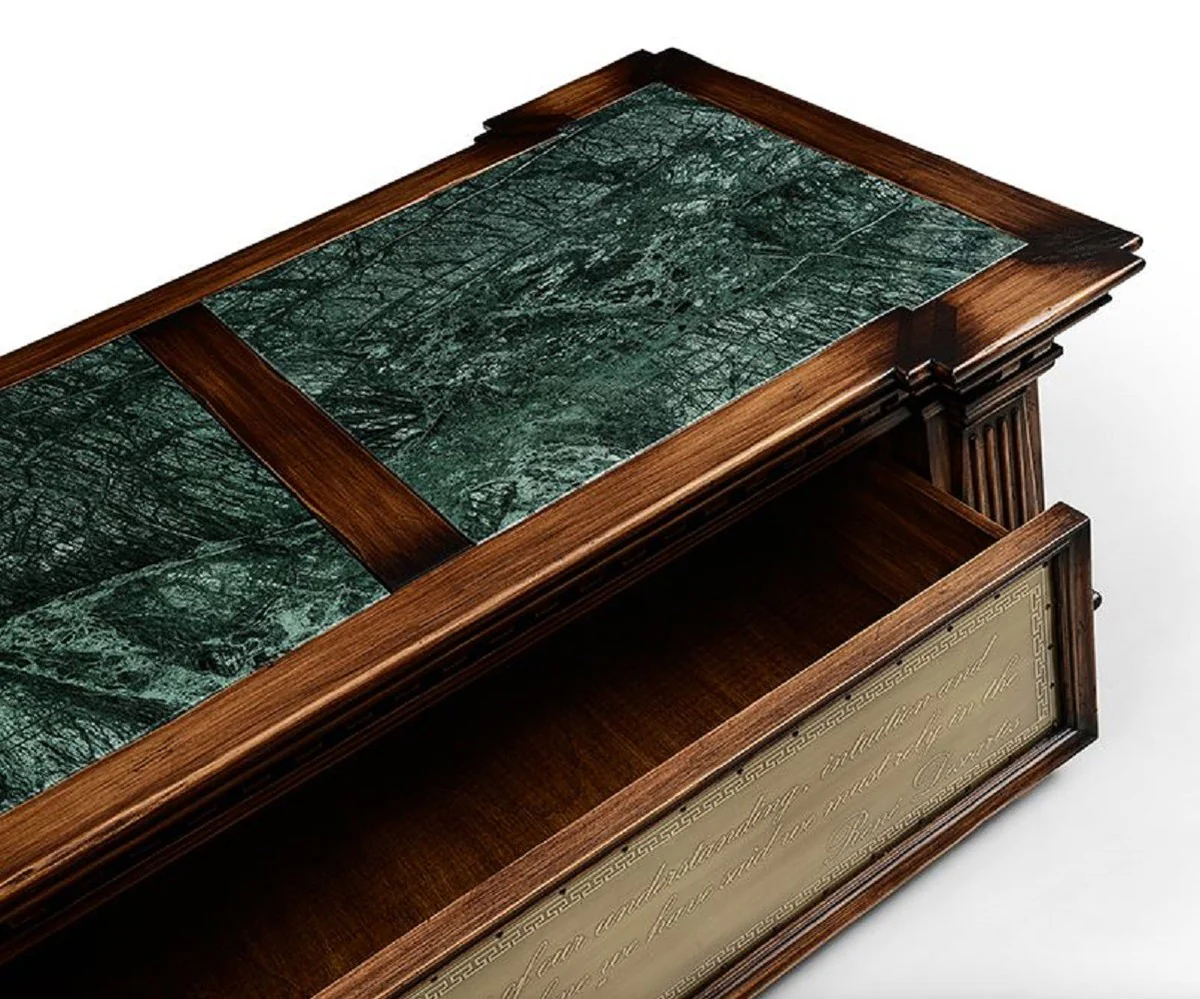 Casa Padrino mesa de centro de estilo vintage de lujo marr¨®n / verde / lat¨®n 156 x 89,5 x A. 48 cm - Mesa de sal¨®n rectangular madera maciza con caj¨®n - Muebles de sal¨®n de lujo de estilo vintage