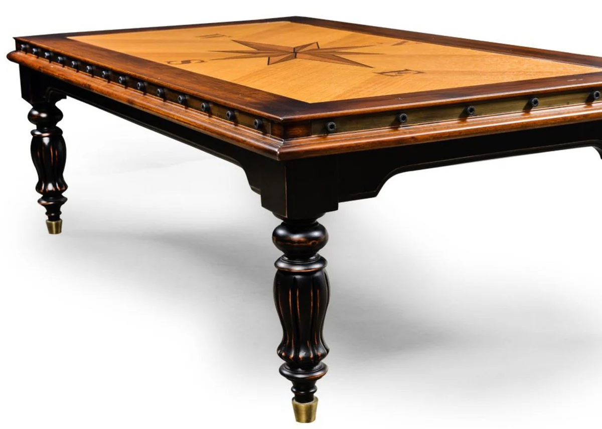 Casa Padrino mesa de centro de estilo vintage de lujo natural / marr¨®n / negro 137 x 77 x A. 45 cm - Mesa de sal¨®n rectangular de madera maciza - Muebles de sal¨®n estilo vintage - Muebles de lujo