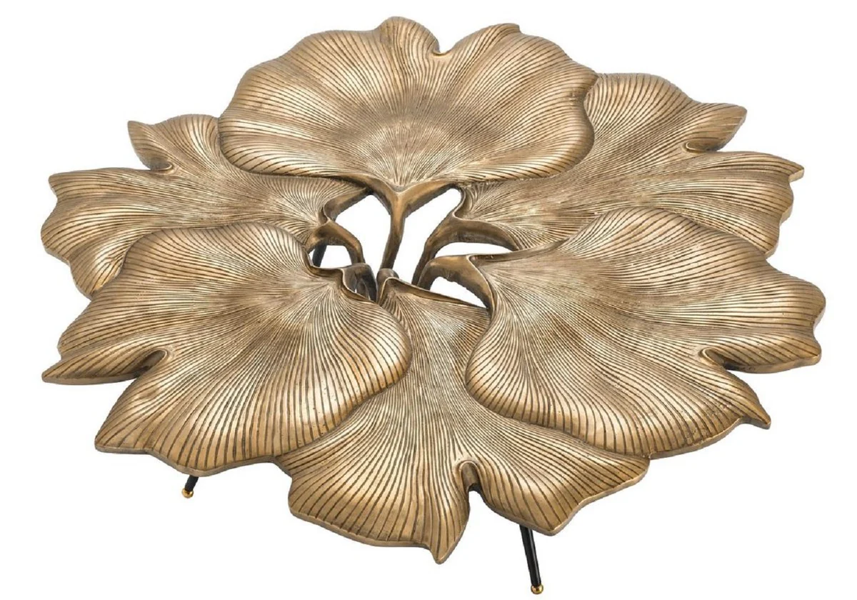 Casa Padrino mesa de centro de dise?o vintage lat¨®n / negro / oro 98 x 92 x H. 29 cm - Mesa de Sal¨®n en Dise?o de Hoja de Ginkgo - Calidad de Lujo